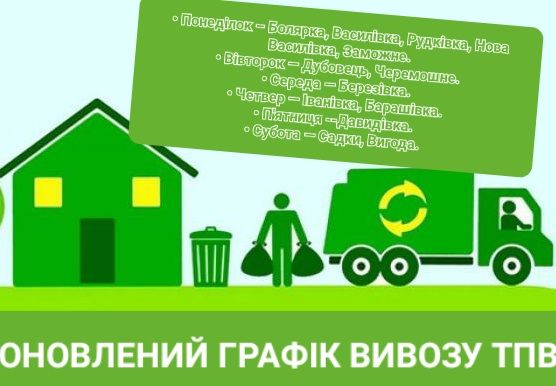 УВАГА! З 1 ЛИПНЯ ОНОВЛЕНО ГРАФІК ВИВОЗУ СМІТТЯ: