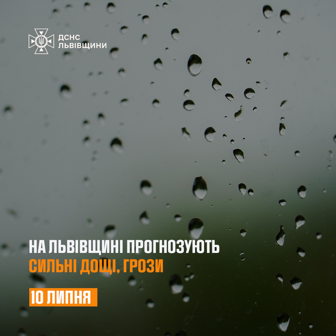 За повідомленням Львівського регіонального центру з гідрометеорології України по території Львівської області 10 липня сильні дощі, по півдню території місцями надзвичайні. Грози, подекуди шквали 15 – 20 м/с, град.
