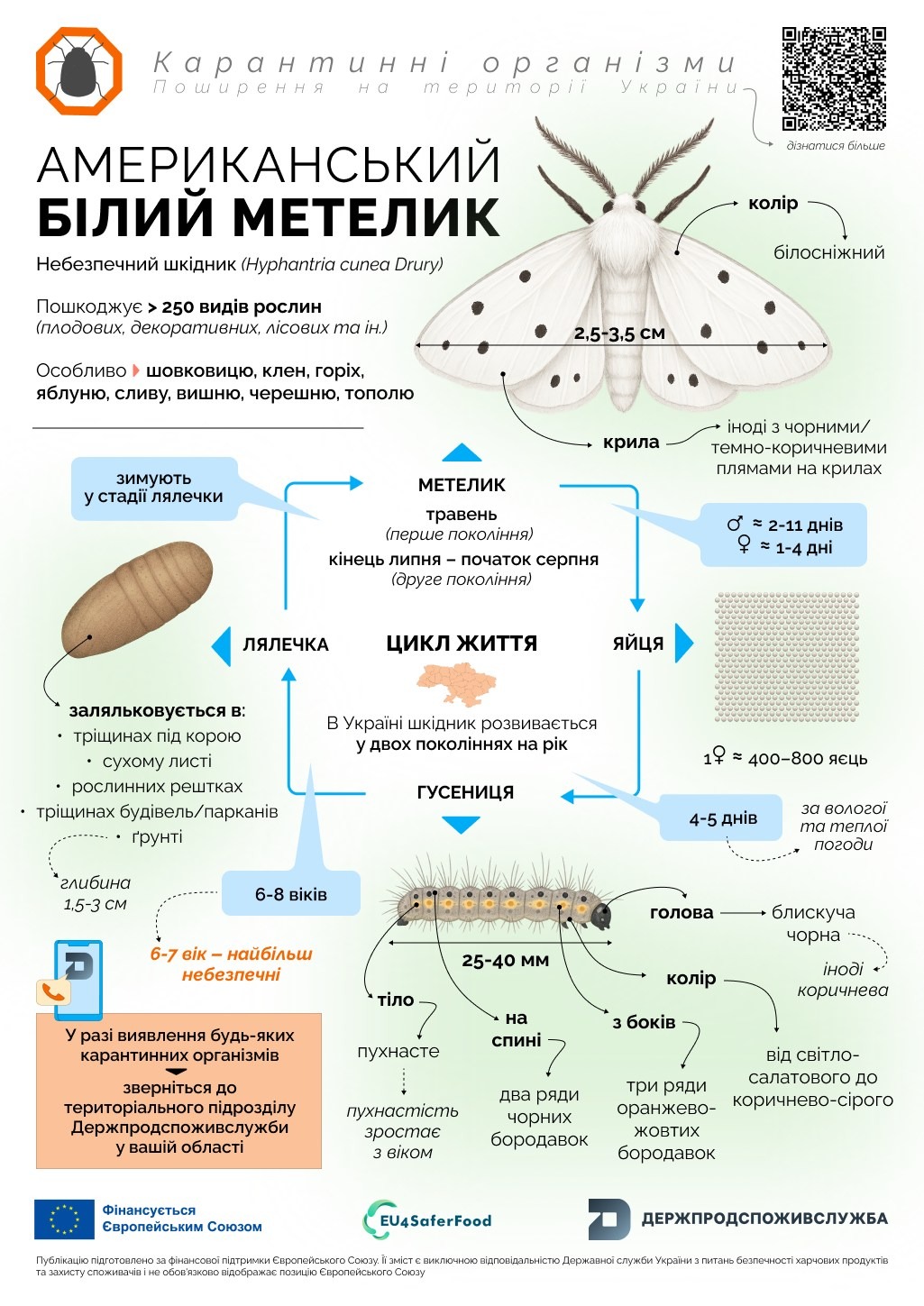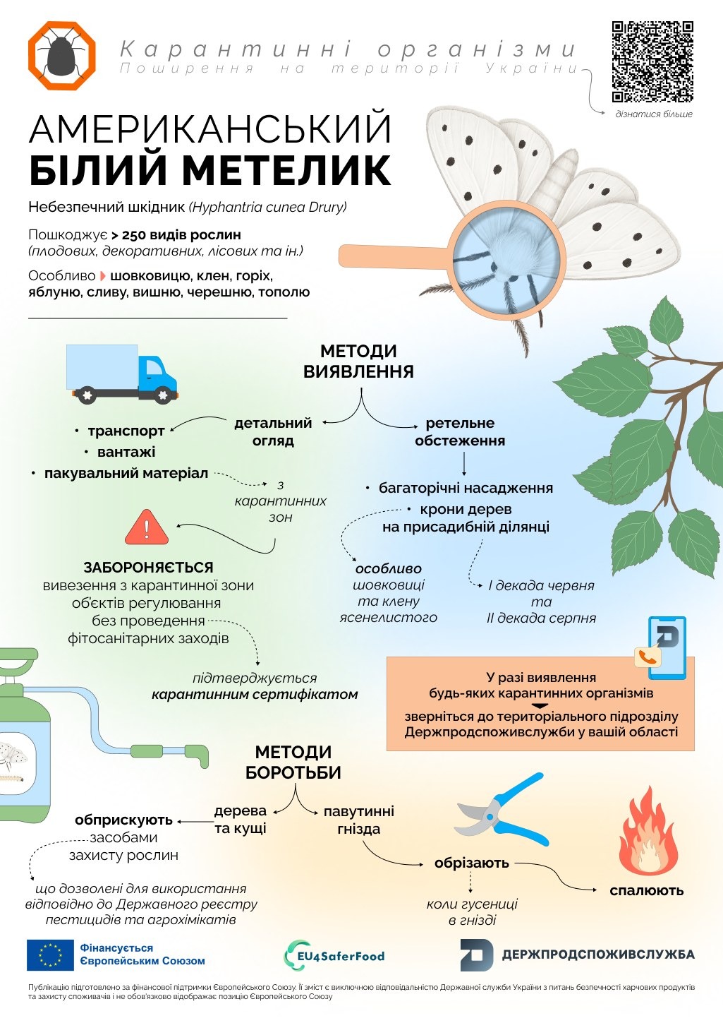 📢 УВАГА! Небезпечний карантинний шкідник – американський білий метелик!