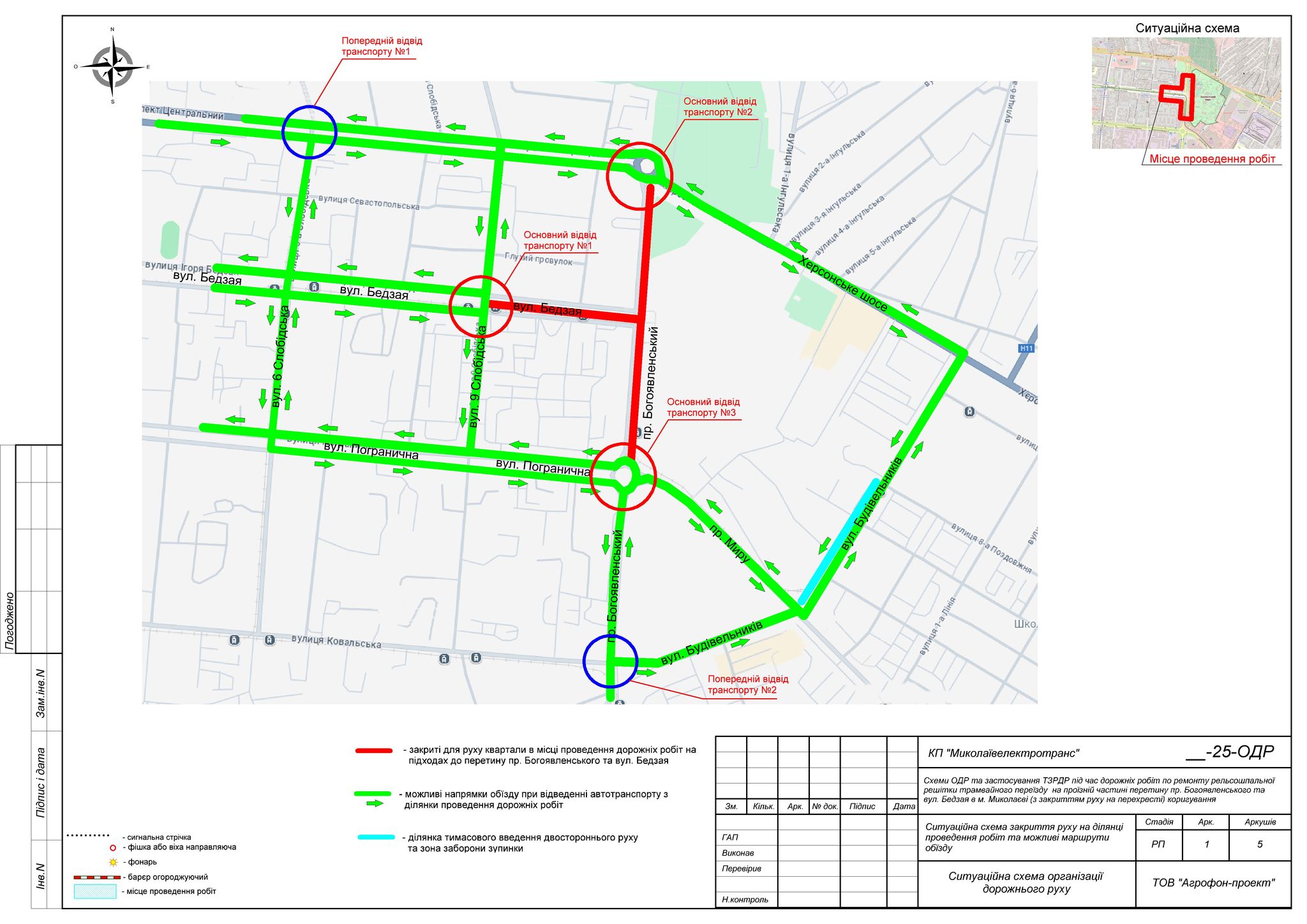 З понеділка, 11 серпня, буде перекрито проїзд автомобільного транспорту по проспекту Богоявленський від проспекту Центрального до проспекту Миру для проїзду (район Миколаївського зоопарку).