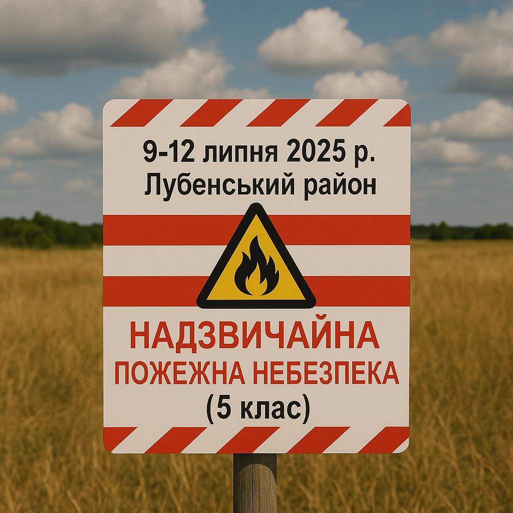 За даними Полтавського обласного центру з гідрометеорології, з 9 по 12 липня 2025 року на території Лубенського району прогнозується надзвичайний рівень пожежної небезпеки (5 класу).