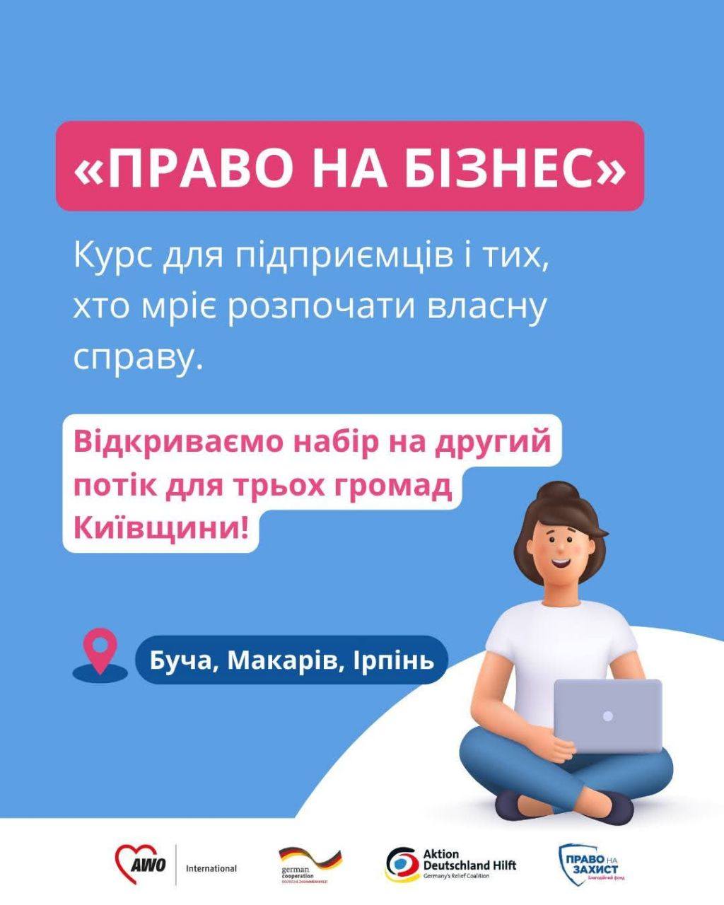 В рамках Меморандуму про співпрацю між Макарівською селищною радою та Благодійною організацією «Благодійний фонд «Право на захист», БФ «Право на захист» оголошує набір на другий потік освітньої програми «Право на бізнес».