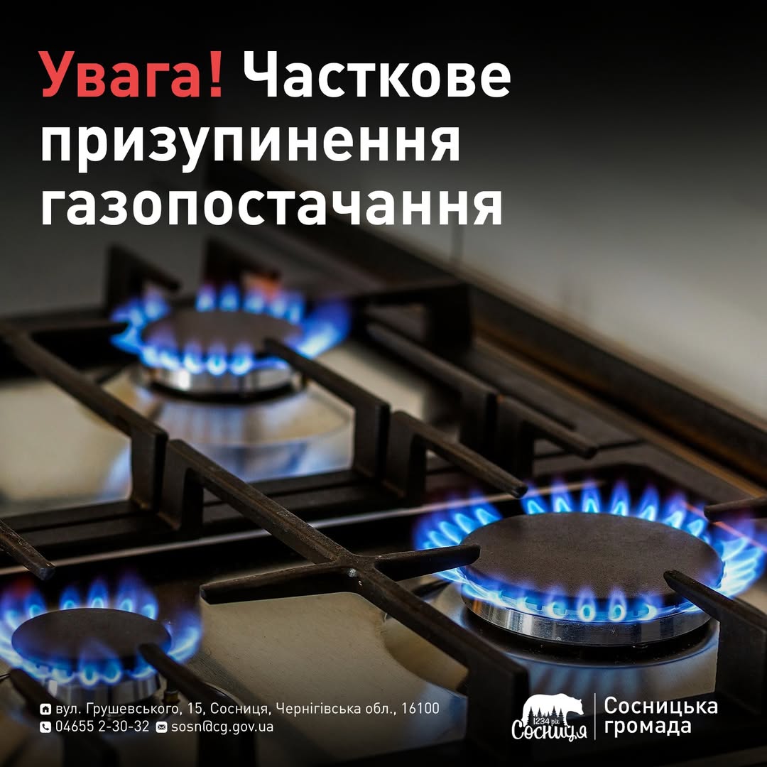 ⚡️ Важливе повідомлення для мешканців Сосниці: часткове призупинення газопостачання ⚡️