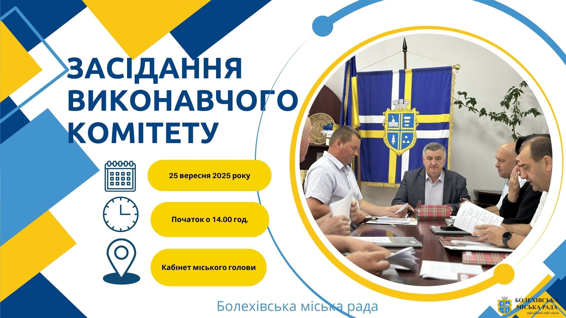 Шановні мешканці Болехівської міської територіальної громади! Повідомляємо вам про скликання чергового засідання виконавчого комітету, яке відбудеться **25 вересня 2025 року о 14:00** у приміщенні міської ради. Це засідання має ключове значення для розвитку нашої громади, адже на ньому буде розглядатися низка важливих питань.