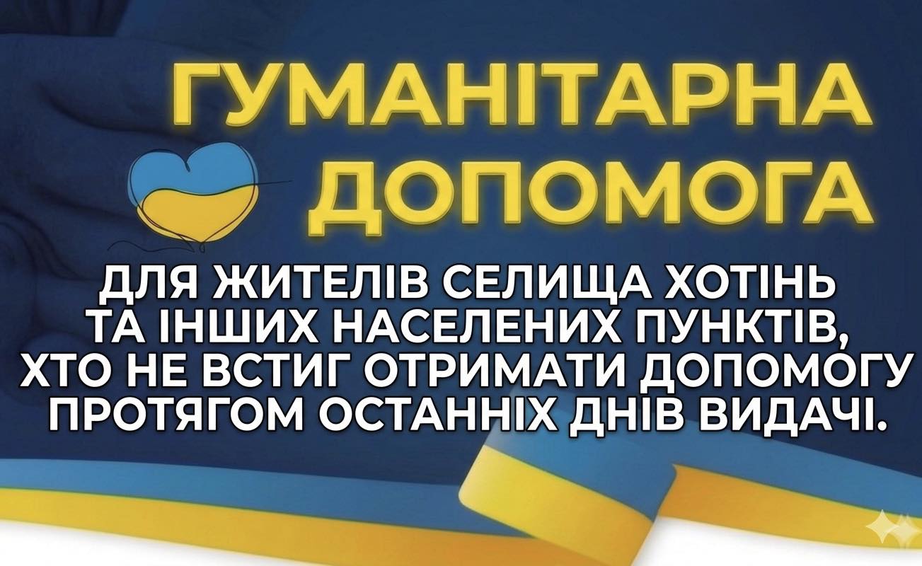 ШАНОВНІ ЖИТЕЛІ СЕЛИЩА ХОТІНЬ ТА ІНШИХ НАСЕЛЕНИХ ПУНКТІВ ХТО НЕ ВСТИГ ОТРИМАТИ ДОПОМОГУ ПРОТЯГОМ ОСТАННІХ ДНІВ ВИДАЧІ!