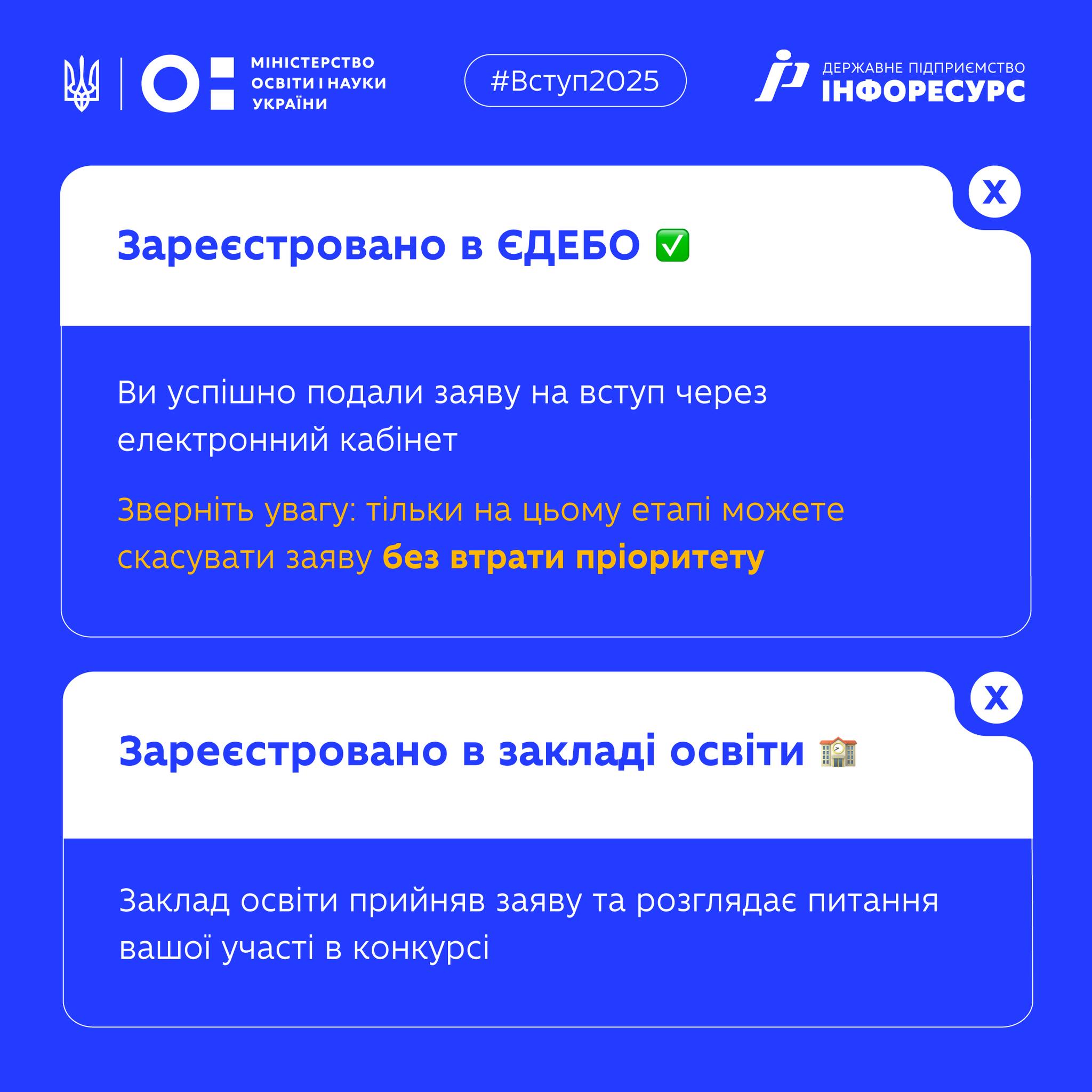 ☝️ Початок вступної кампанії: важливі статуси заяв на бакалаврат з 19 липня!