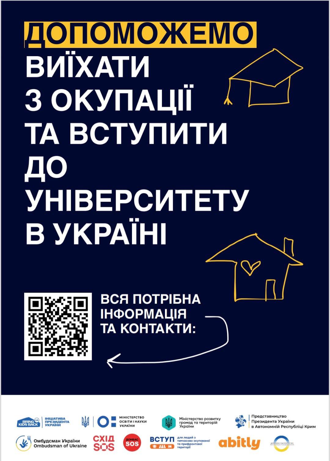ℹ️ Детальна інформація про можливість безпечно виїхати з ТОТ, умови вступу до закладів вищої освіти в Україні та контакти для звʼязку зібрана за цим посиланням: http://bit.ly/3TxdUeh