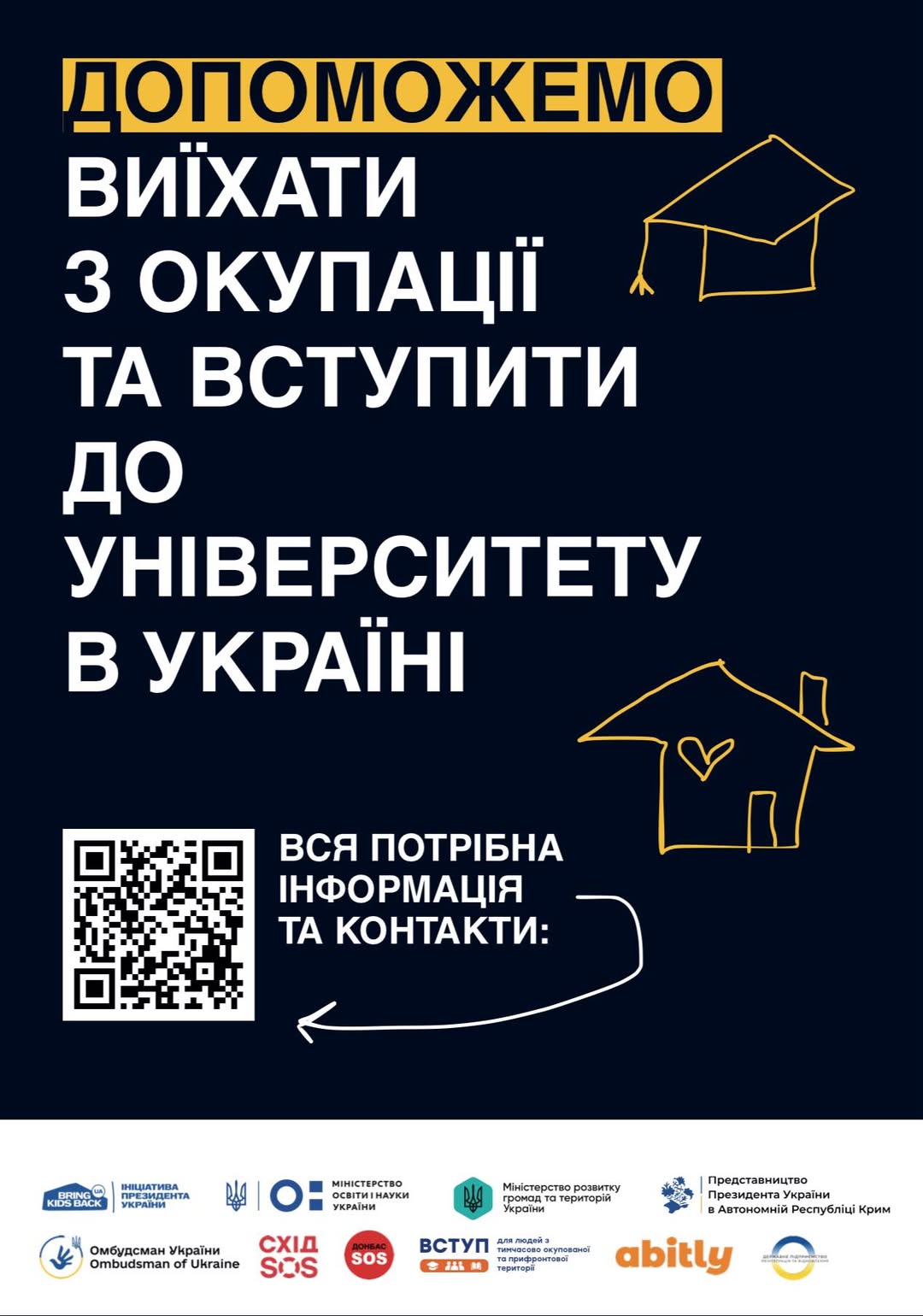 ℹ️ Детальна інформація про можливість безпечно виїхати з ТОТ, умови вступу до закладів вищої освіти в Україні та контакти для звʼязку зібрана за цим посиланням: http://bit.ly/3TxdUeh