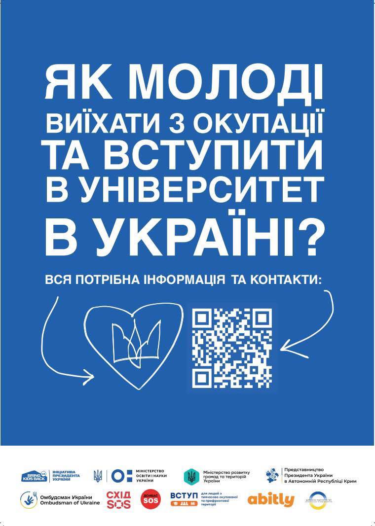 ℹ️ Детальна інформація про можливість безпечно виїхати з ТОТ, умови вступу до закладів вищої освіти в Україні та контакти для звʼязку зібрана за цим посиланням: http://bit.ly/3TxdUeh
