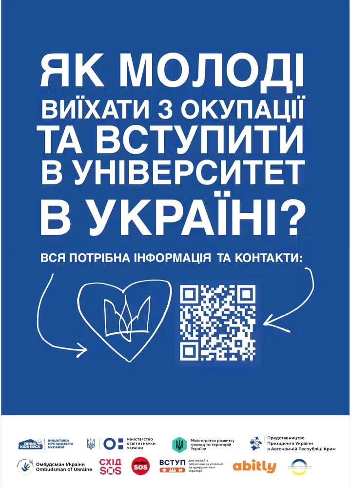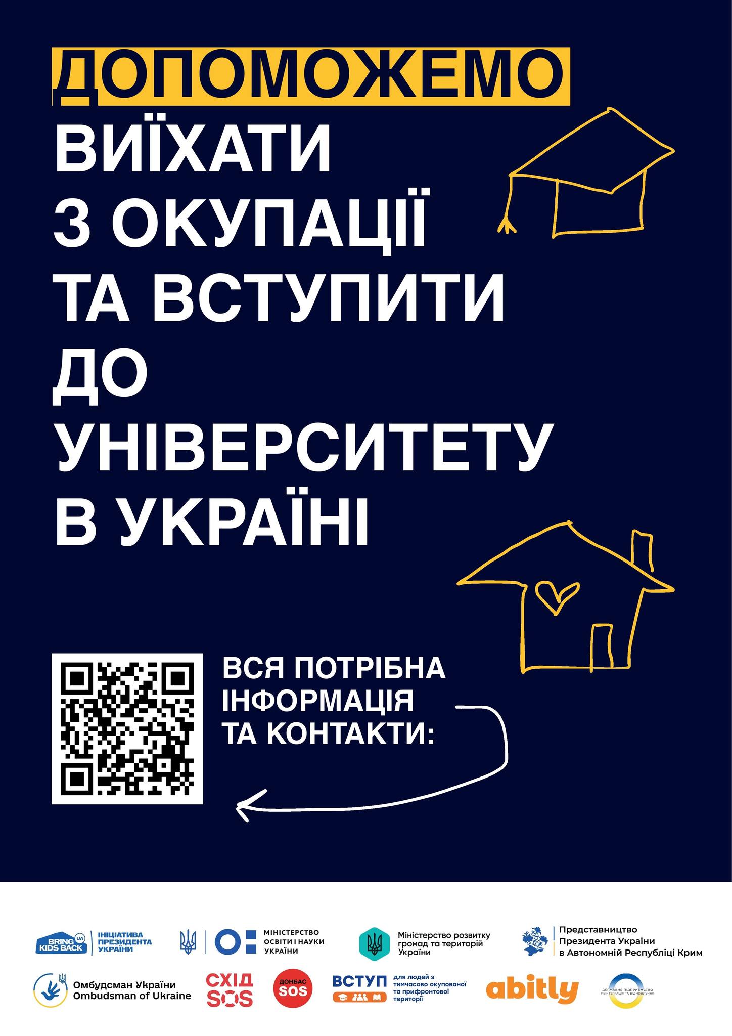 ℹ️ Детальна інформація про можливість безпечно виїхати з ТОТ, умови вступу до закладів вищої освіти в Україні та контакти для звʼязку зібрана за цим посиланням: http://bit.ly/3TxdUeh