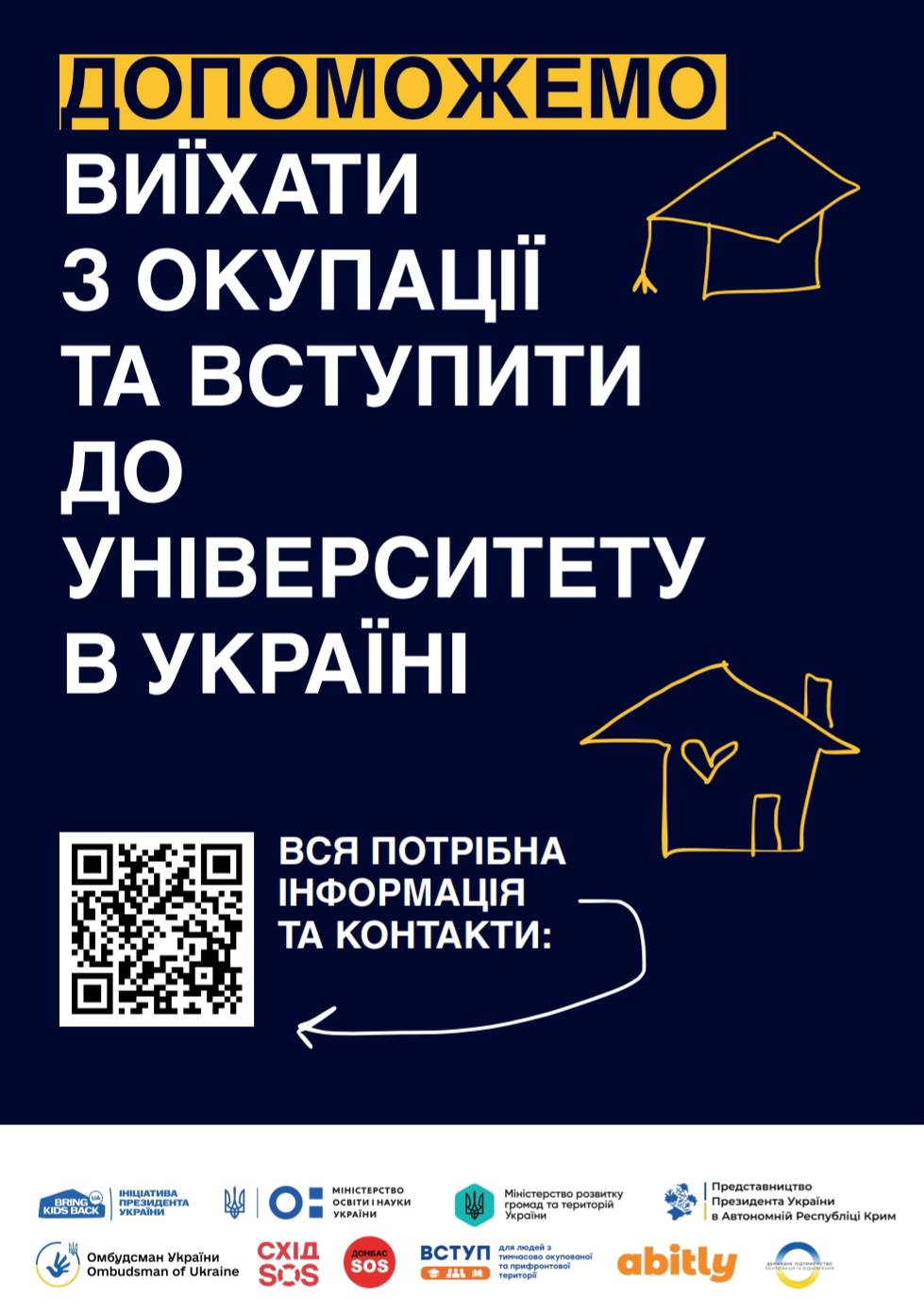 Детальна інформація про можливість безпечно виїхати з ТОТ, про умови вступу до закладів вищої освіти в Україні та контакти для звʼязку зібрана за цим посиланням.