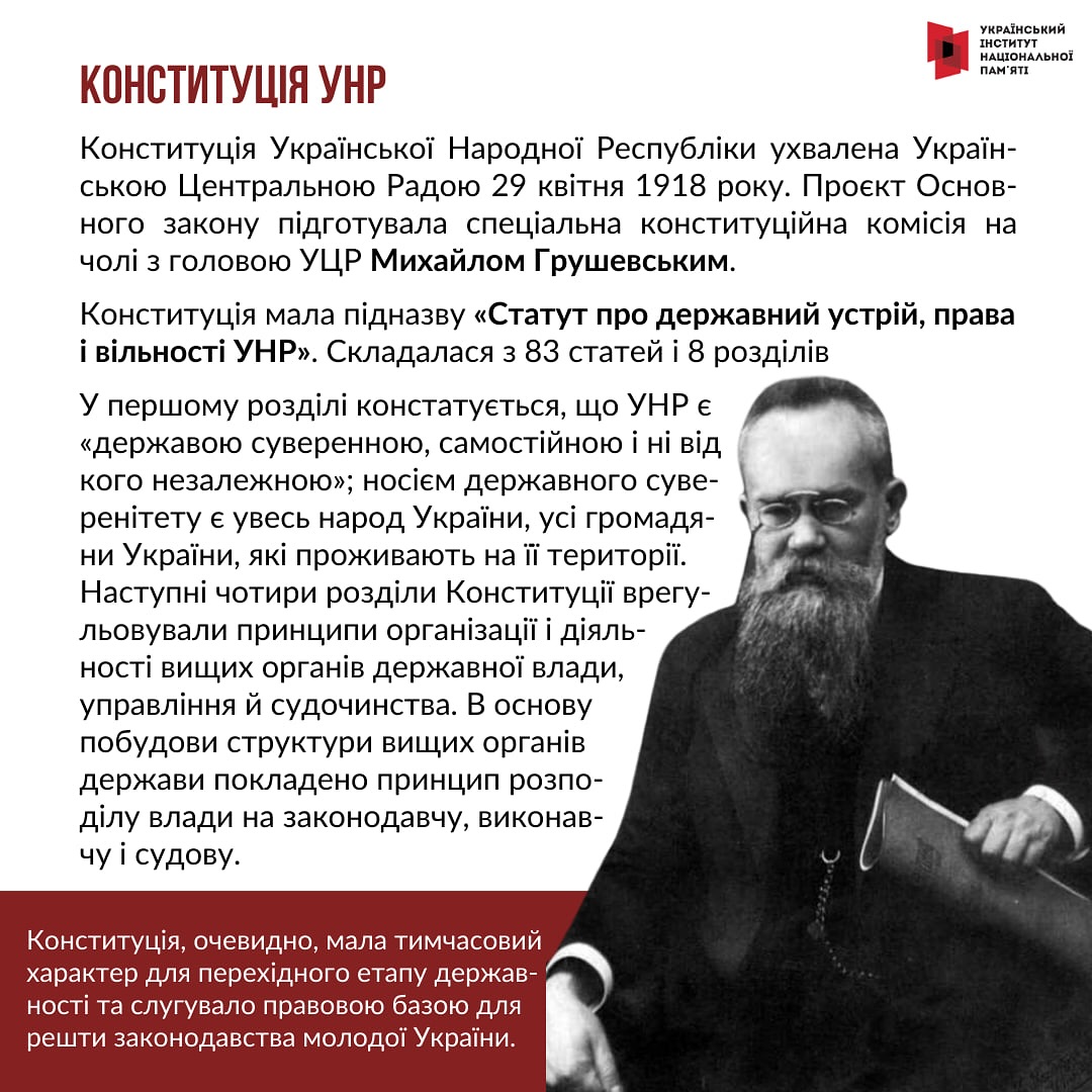 Українська Конституція — це значно більше, ніж просто правовий документ, ухвалений у 1996 році. Це кульмінація багатовікової історії невпинної боротьби українського народу за своє суверенне право на свободу, справедливість та гідне життя. Цей шлях до Основного Закону був довгим, сповненим викликів та історичних віх, що формували національну ідентичність і прагнення до правової держави.Від найдавніших правових зводів, таких як «Руська Правда», що заклала перші основи правового регулювання на наших землях, до Литовських статутів, які стали значним кроком у систематизації права і формуванні європейських правових традицій, українці завжди прагнули до впорядкованого суспільства. Козацькі універсали, що декларували самоврядування та права, а також видатна Конституція Пилипа Орлика 1710 року, яка є однією з перших конституцій у Європі, не лише задекларувала основи правової держави, але й заклала принципи поділу влади, соціального договору та захисту прав громадян.Кожен з цих історичних етапів, включаючи державотворчі ініціативи Української Народної Республіки, героїчні зусилля Карпатської України та діяльність Української головної визвольної ради, свідчить про неперервне прагнення українців жити у суспільстві, де верховенство права, захист прав людини та демократичні цінності є не просто задекларованими принципами, а непорушною основою державного устрою.Сучасна Конституція України є прямим спадком цієї багатої та складної традиції. Вона втілює не лише правову мудрість, але й духовну волю українського народу: бути справжніми господарями на своїй землі, плекати та шанувати гідність кожної людини, а також будувати майбутнє на міцному та непохитному фундаменті права та справедливості. Це не просто збірник статей, а живий документ, що відбиває національні прагнення та оберігає фундаментальні свободи. Кожна стаття Конституції України є результатом століть боротьби та мрії про вільну та незалежну Україну, де кожен громадянин почувається захищеним та має рівні права. Таким чином, розуміння історії та значення Конституції України є ключовим для кожного, хто прагне до усвідомленого громадянства.Детальніше про історію Конституційного процесу в добу Української революції 1917–1921 років читайте у картках.