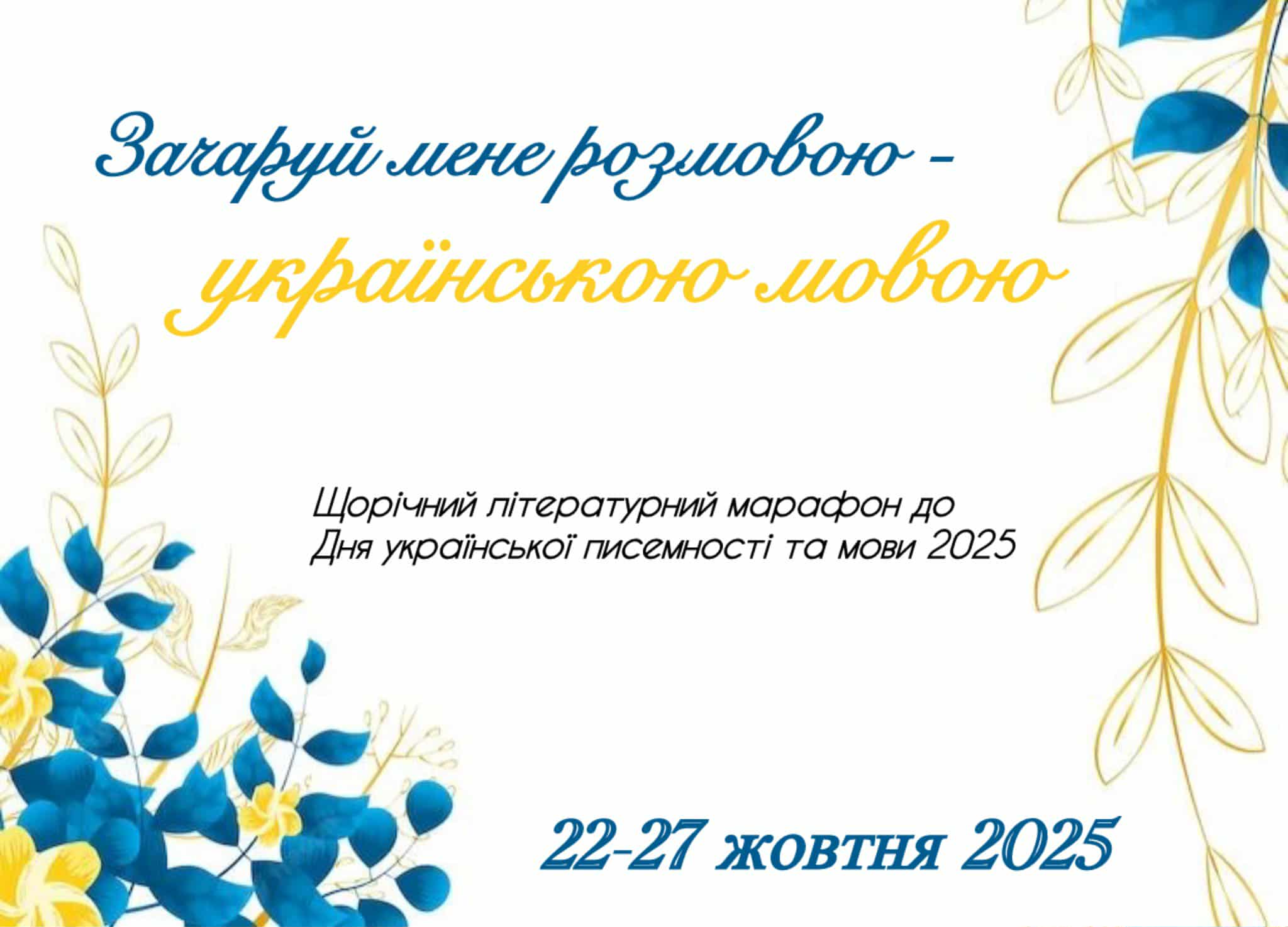 ## 🩵💛До Дня української писемності та мови запрошуємо вас взяти участь у захопливому літературному марафоні **«Зачаруй мене розмовою – українською мовою».**