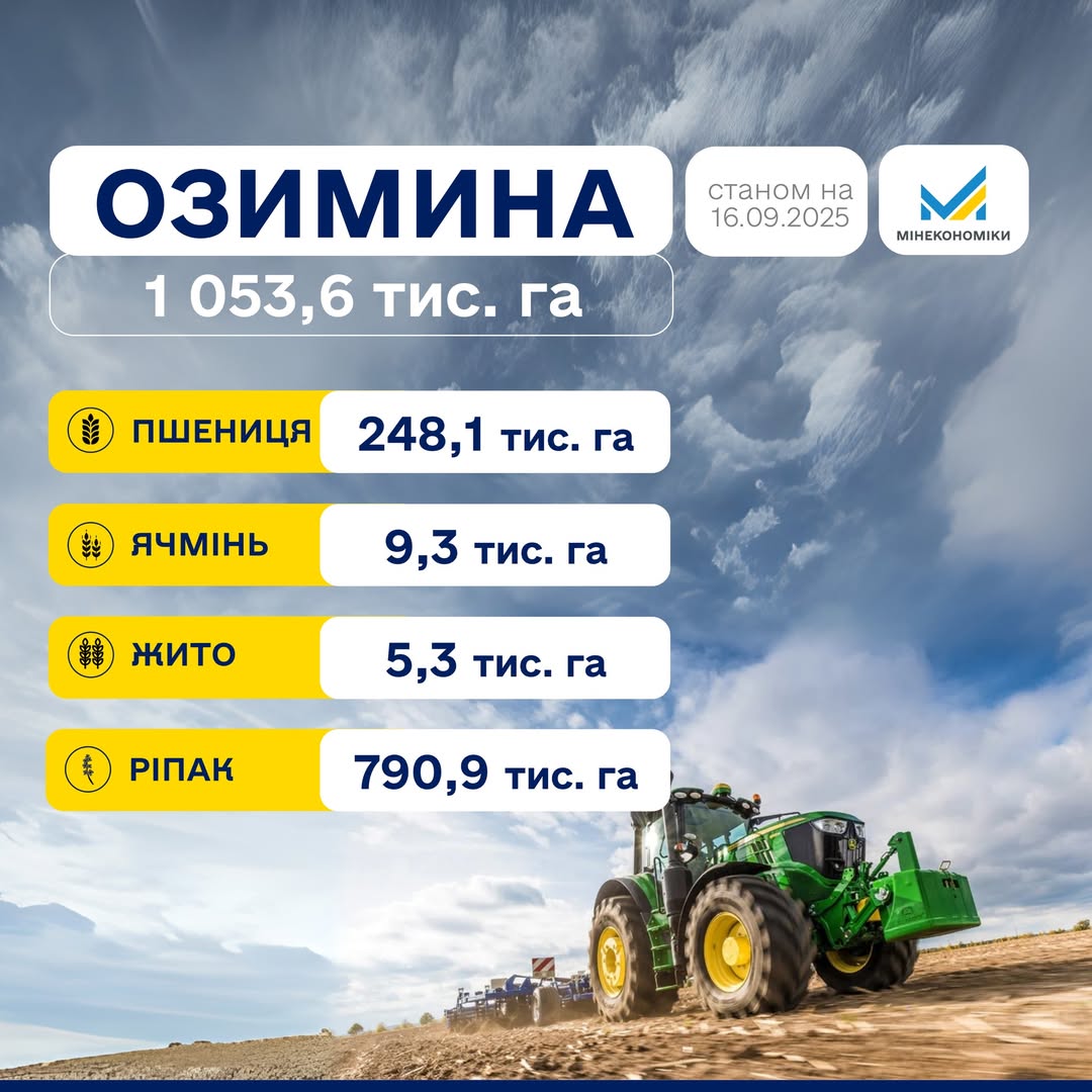 🌾 Українські аграрії успішно розпочали посівну кампанію озимих культур, демонструючи вражаючі результати. Станом на 15 вересня 2025 року, загалом засіяно понад мільйон гектарів, а саме 1053,6 тис. га. Цей показник свідчить про активну роботу агросектору та його внесок у продовольчу безпеку країни. Роботи з посіву озимих культур охопили вже 18 областей України, що підтверджує масштаби кампанії.