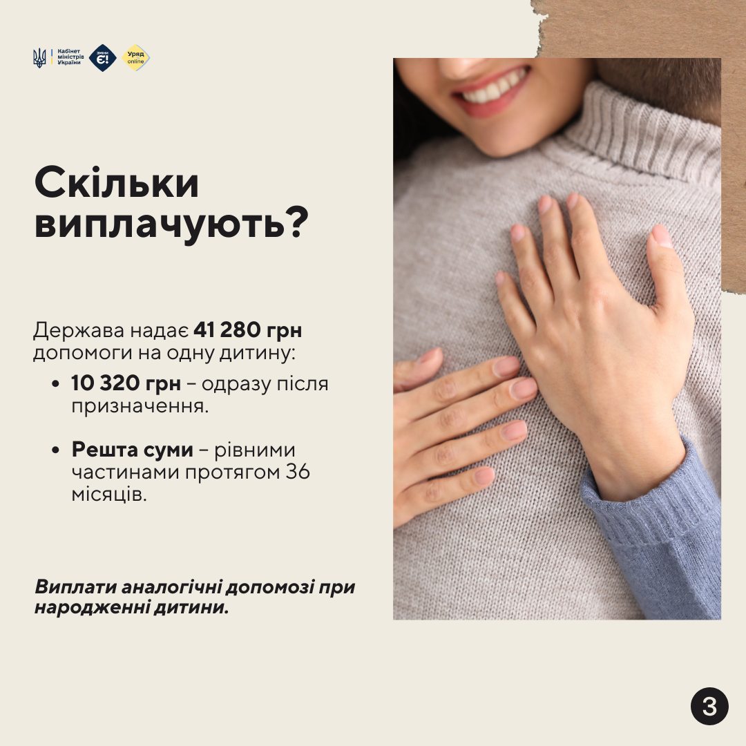 Українці, які усиновили дитину, мають право на державну грошову допомогу в розмірі 41 280 грн. Заяву можна подати онлайн або офлайн. Хто має право на виплату та куди звертатися, дивіться у інфографіці.