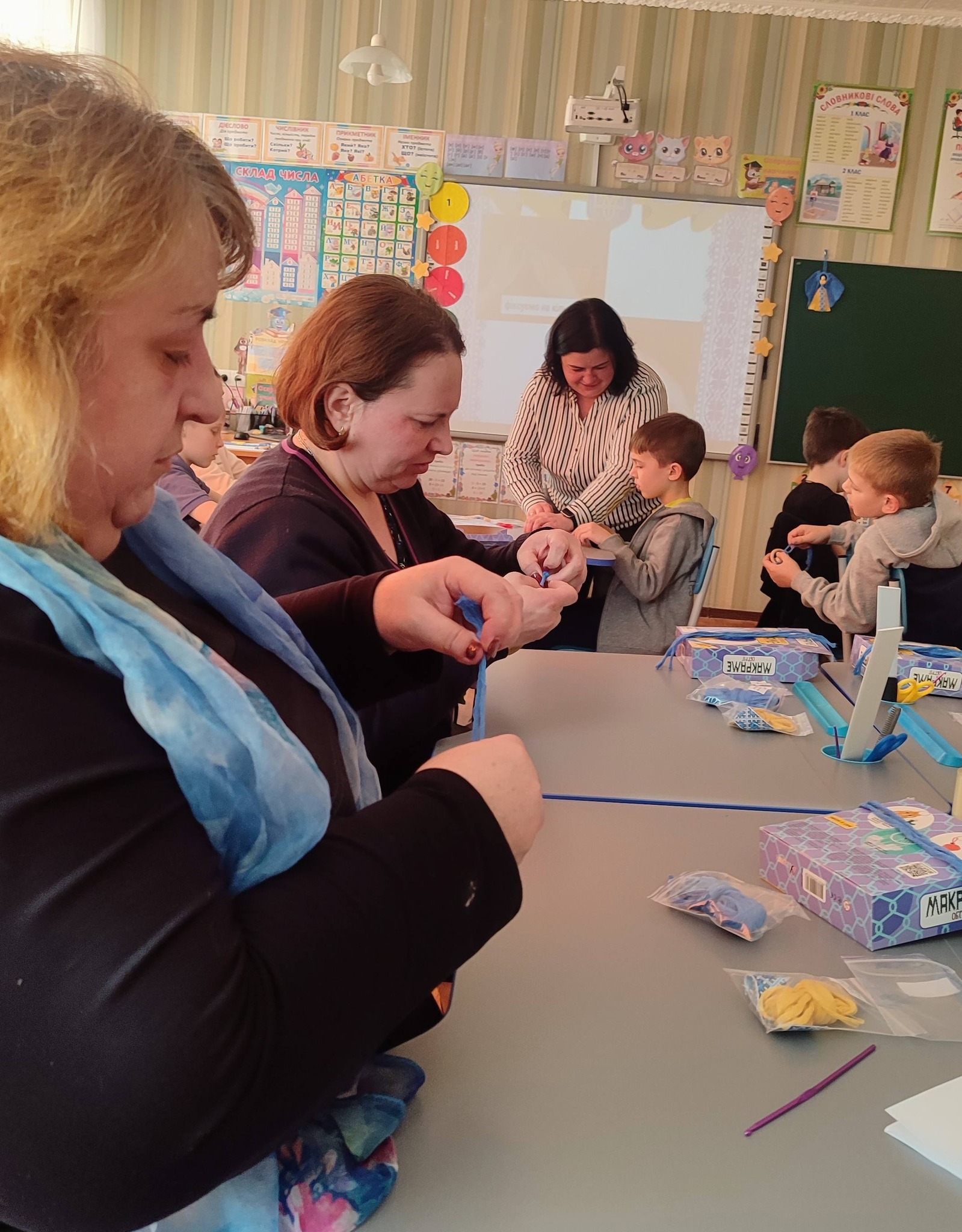 Практична частина уроку пройшла в атмосфері щирої творчості та взаємної підтримки. Дорослі та діти з неймовірним захопленням працювали над створенням синьо-жовтих янголів, вкладаючи в кожен виріб частинку своєї душі та віри в Перемогу. Тепла атмосфера сприяла невимушеному спілкуванню та обміну ідеями.