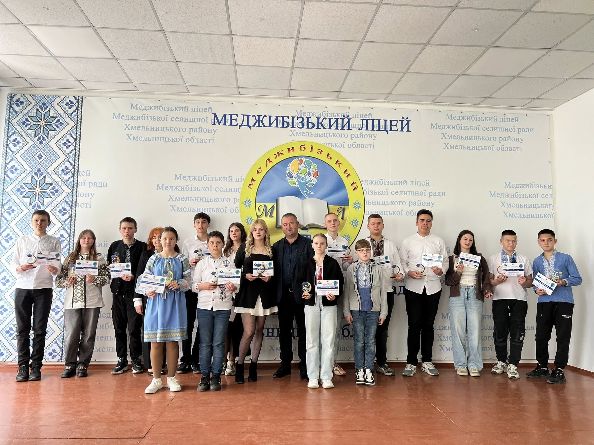 Напередодні Всесвітнього дня наук, у Меджибізькому ліцеї відбулося урочисте нагородження переможців ІІ та ІІІ етапів всеукраїнських шкільних учнівських олімпіад 2024/2025 навчального року та відзначення педагогів за високий професіоналізм, результативну діяльність і підготовку учнів до олімпіад з базових предметів, Міжнародного конкурсу знавців української мови імені Петра Яцика, а також XV Міжнародного мовно-літературного конкурсу імені Тараса Шевченка.