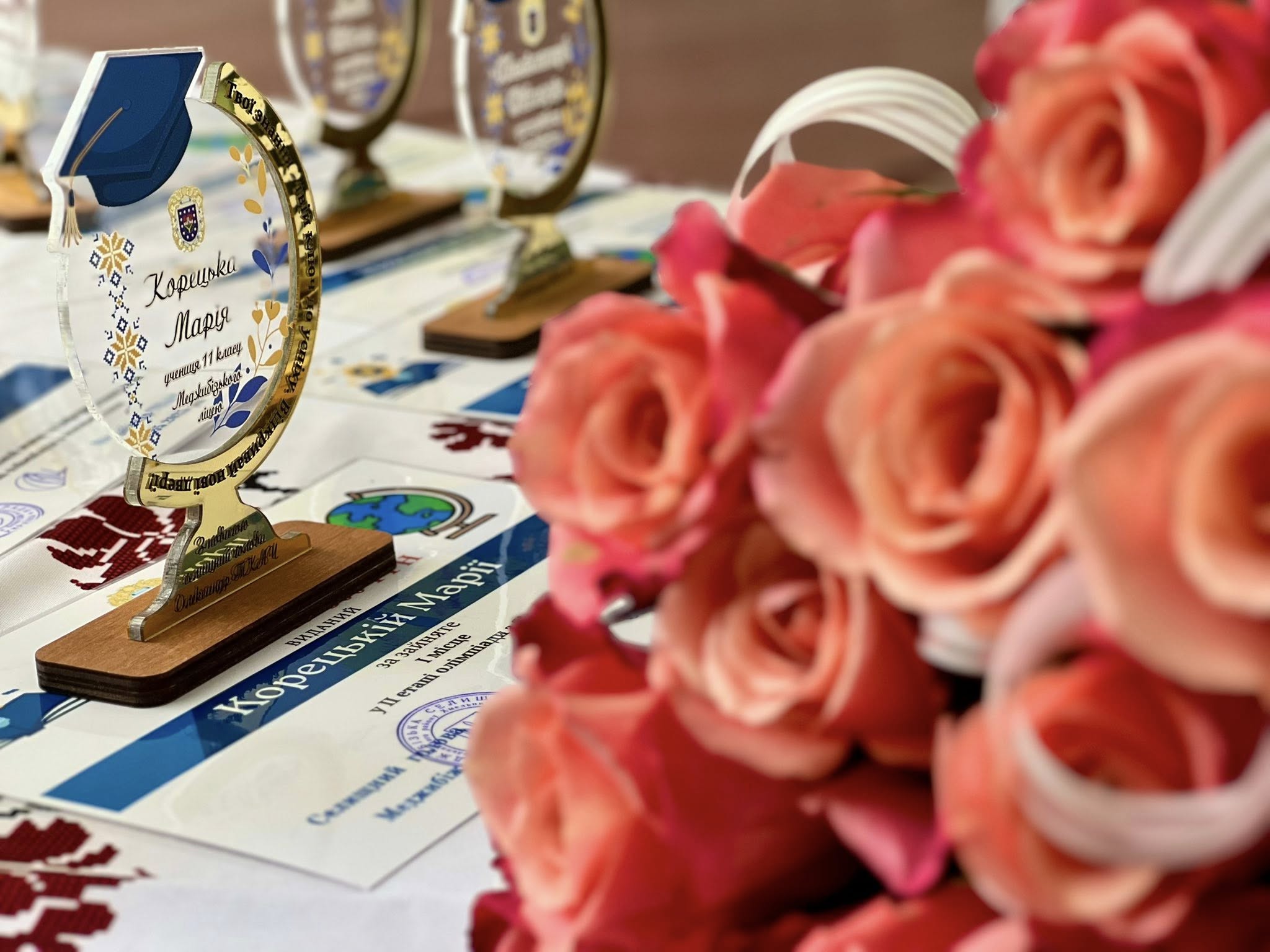 Відзначено учнів, які посіли І місця у конкурсах та олімпіадах: Марценюк Богдан, Стрілець Артьом, Бачинська Орися, Чорна Анна, Швець Дмитро, Лисак Віктор, Лємешова Алєвтіна, Холіманчук Віктор, Варченко Максим, Мацьков Мирослав, Корецький Олександр, Кіт Олександра, Микитюк Ілля, Петров Вадим, Мельник Руслан, Кислий Роман, Корецька Марія. Дітям вручили сертифікати на грошову премію та пам’ятні знаки за їхні досягнення. Нагородження педагогів та учнів сприяє підвищенню мотивації до навчання.