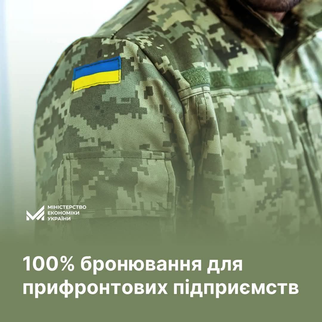 💥Уряд дозволив бронювати 100% працівників критично важливих підприємств на прифронтових територіях – повідомляє Міністерство економіки України.