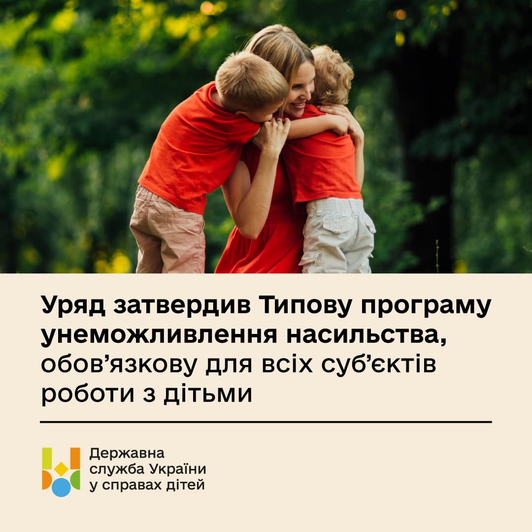 Уряд України затвердив важливу Типову програму, спрямовану на **унеможливлення насильства над дітьми** та жорстокого поводження з ними. Її головна мета – забезпечення відчуття захищеності кожної дитини, незалежно від місця перебування: чи то школа, лікарня, спортивний гурток, чи літній табір. Програма **унеможливлення насильства над дітьми** розроблена Міністерством соціальної політики України і буде впроваджуватися всіма установами, що працюють з дітьми та молоддю, а саме: