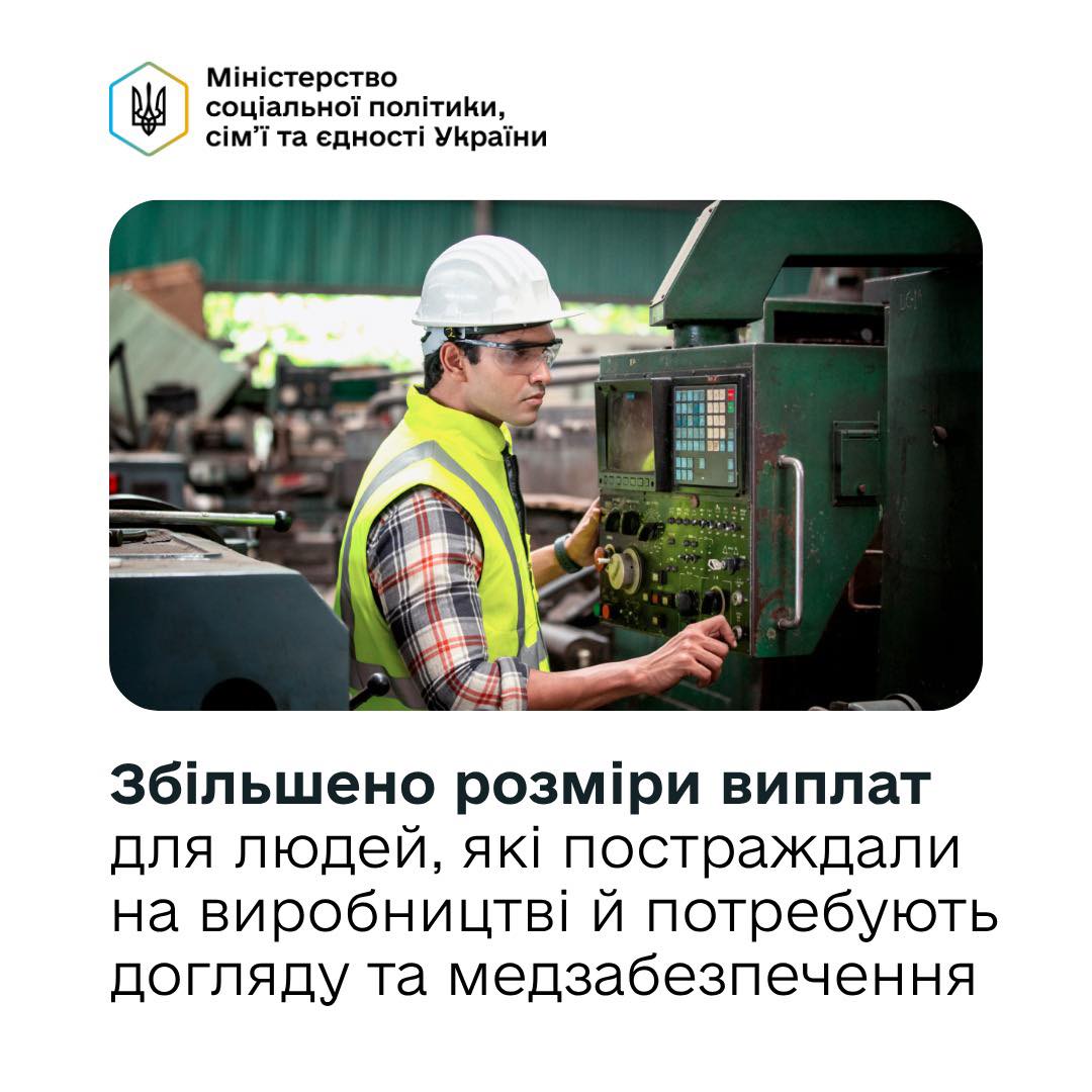 Уряд збільшив розміри щомісячної грошової компенсації для осіб, які постраждали на виробництві й потребують постійного догляду, а також мають постійну потребу у санітарно-гігієнічних засобах, засобах догляду та одночасно на постійній основі потребують медичних виробів або ліків. Відповідну постанову розробило Міністерство соціальної політики, сім’ї та єдності України.