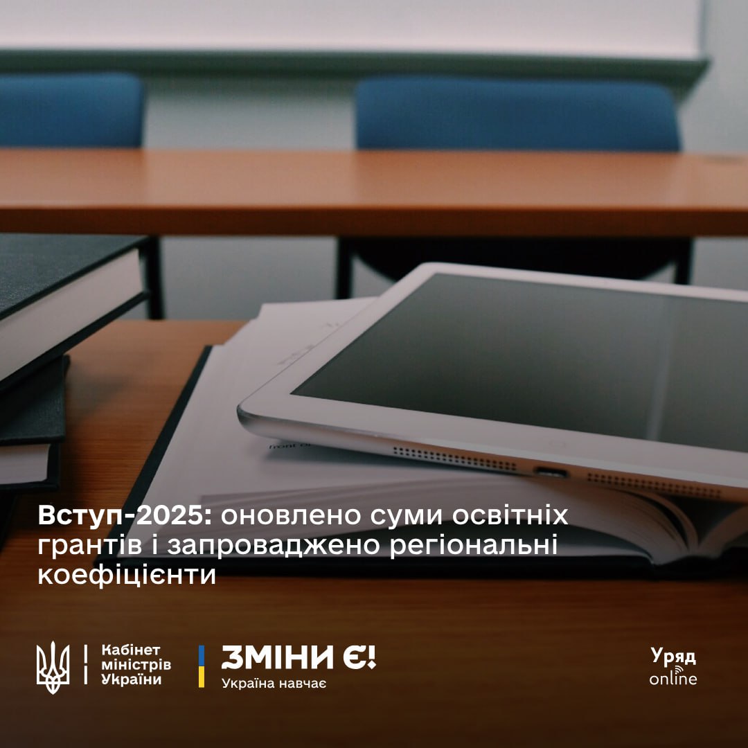❗️Уряд затвердив нові (https://www.kmu.gov.ua/news/zatverdzheno-novi-rozmiry-osvitnikh-hrantiv-ta-dodatkovi-rehionalni-koefitsiienty-dlia-vstupnykiv-2025) розміри державних освітніх грантів для вступників-2025. Вони призначені для тих, хто має високі бали НМТ, але не отримав бюджетного місця.