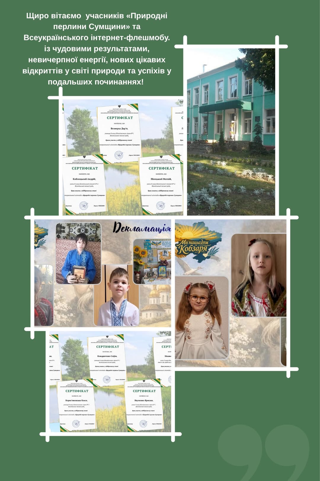 Щиро вітаємо учасників «Природні перлини Сумщини» та Всеукраїнського інтернет-флешмобу. із чудовими результатами, невичерпної енергії, нових цікавих відкриттів у світі природи та успіхів у подальших починаннях!