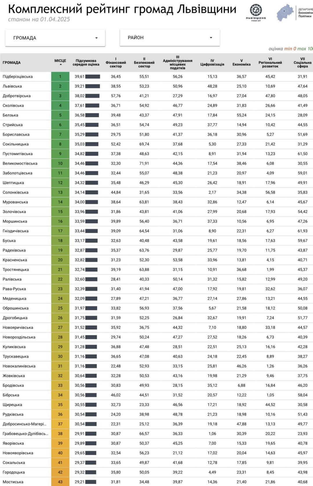 ⚡️⚡️⚡️Підберізцівська сільська територіальна громада посіла перше місце серед ТГ Львівщини за підсумками комплексного рейтингу за 44 показниками 7 блоків, який представив Департамент економічної політики Львівської ОДА
