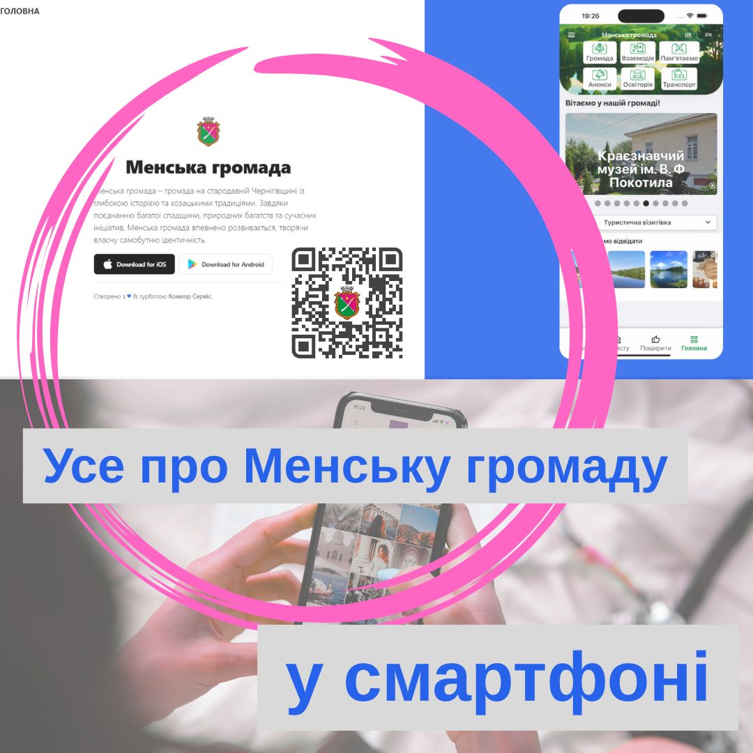 📱 Вся Менська громада – в одному мобільному додатку! Дізнавайтеся найактуальніші новини 📰, події 🎉 та відкривайте туристичні цікавинки 🏞 нашого краю стало ще простіше та зручніше. Відтепер мешканці та гості Менської громади мають можливість безкоштовно користуватися інноваційним мобільним додатком «Менська громада / Mena community».