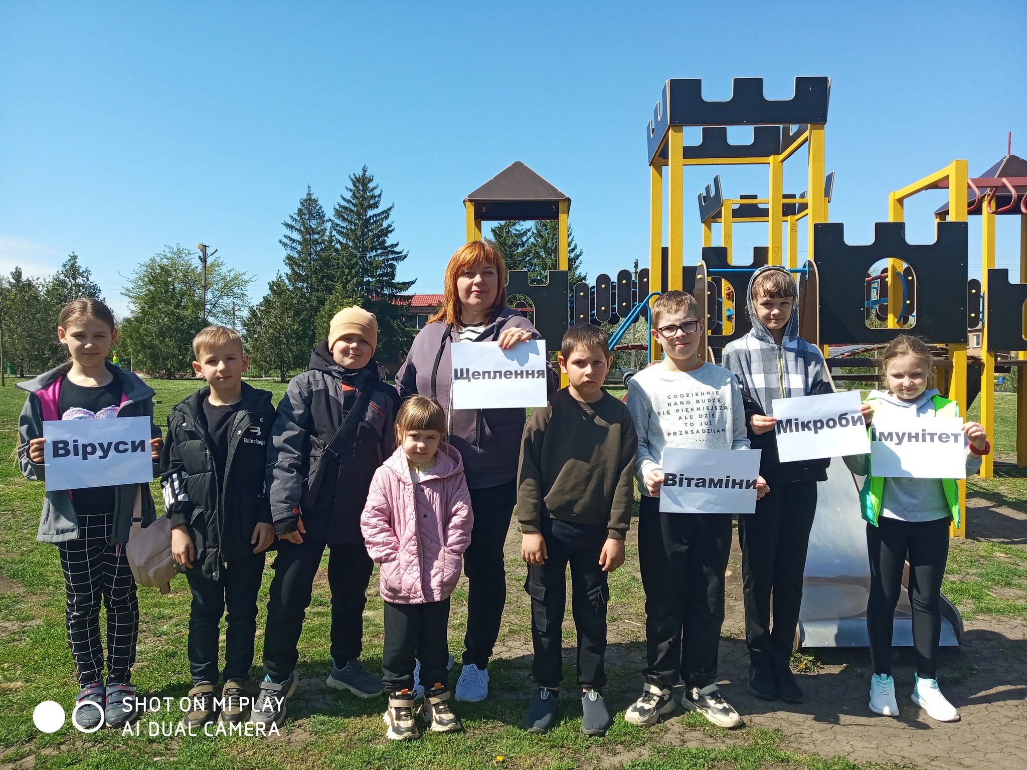 Учні 1-4 класів П’ятигірського ліцею Донецької селищної ради Ізюмського району Харківської області разом зі своїми класними керівниками провели фінальний захід до Тижня імунізації. Було проведено: