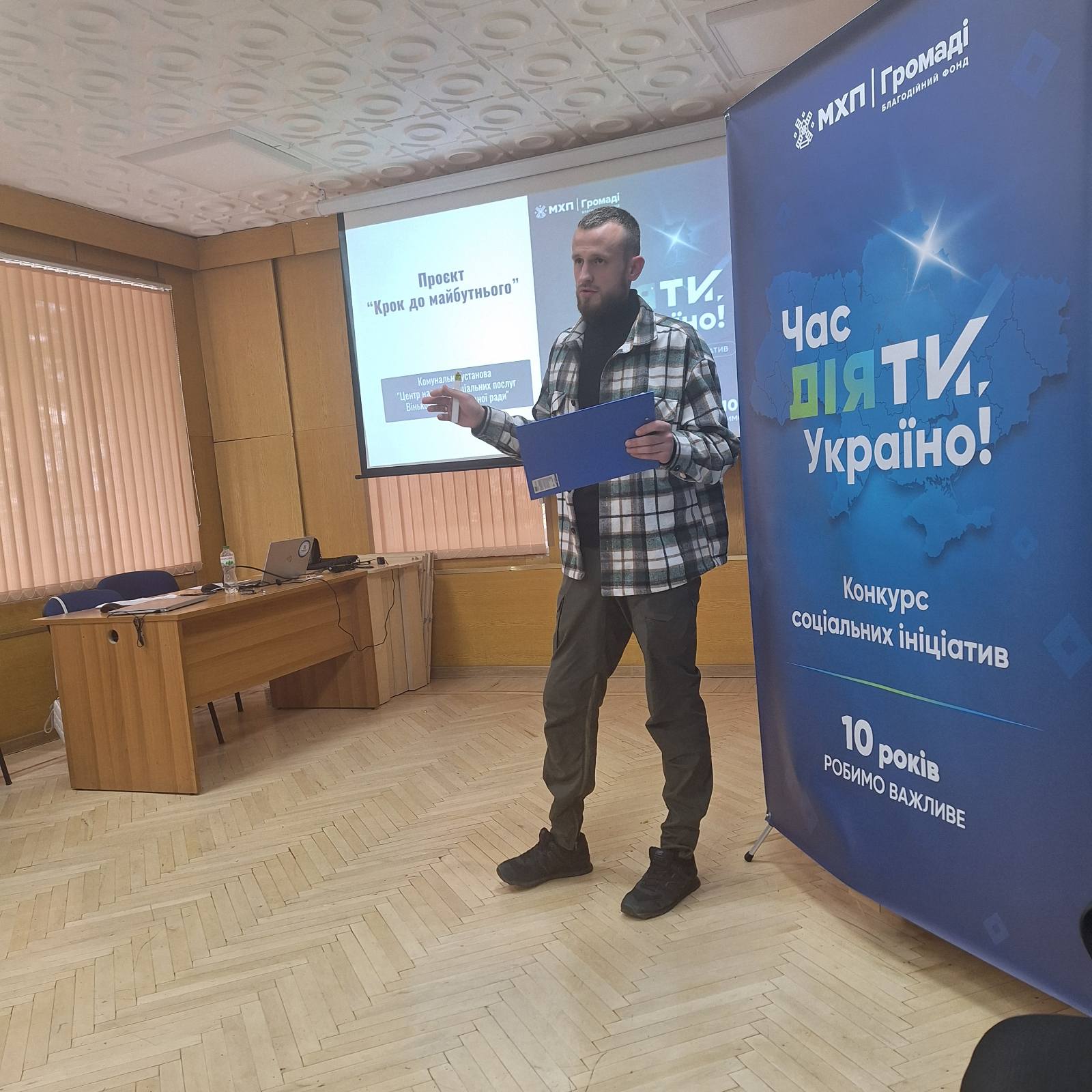 Серед учасників конкурсу свою ініціативу представила комунальна установа “Центр надання соціальних послуг Віньковецької селищної ради”. Було обрано один із пріоритетних напрямків – **реінтеграція та реабілітація ветеранів.** Лот «Партнерство заради сталого розвитку» було презентовано його керівником — фахівцем із супроводу ветеранів та демобілізованих осіб **Кухарським Олегом Миколайовичем**.