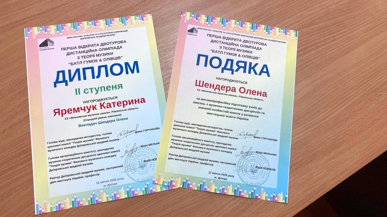 Теорія музики: Учениця з Млинівщини – призер Олімпіади!