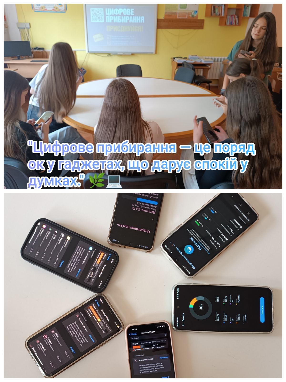 Під час занять з інформатики учні здійснили комплексне «цифрове прибирання» своїх персональних пристроїв. Це включало видалення непотрібних файлів, дубльованих фотографій та програм, які накопичуються з часом і сповільнюють роботу гаджетів. Такий процес допомагає оптимізувати швидкість роботи пристроїв та звільнити цінний дисковий простір.