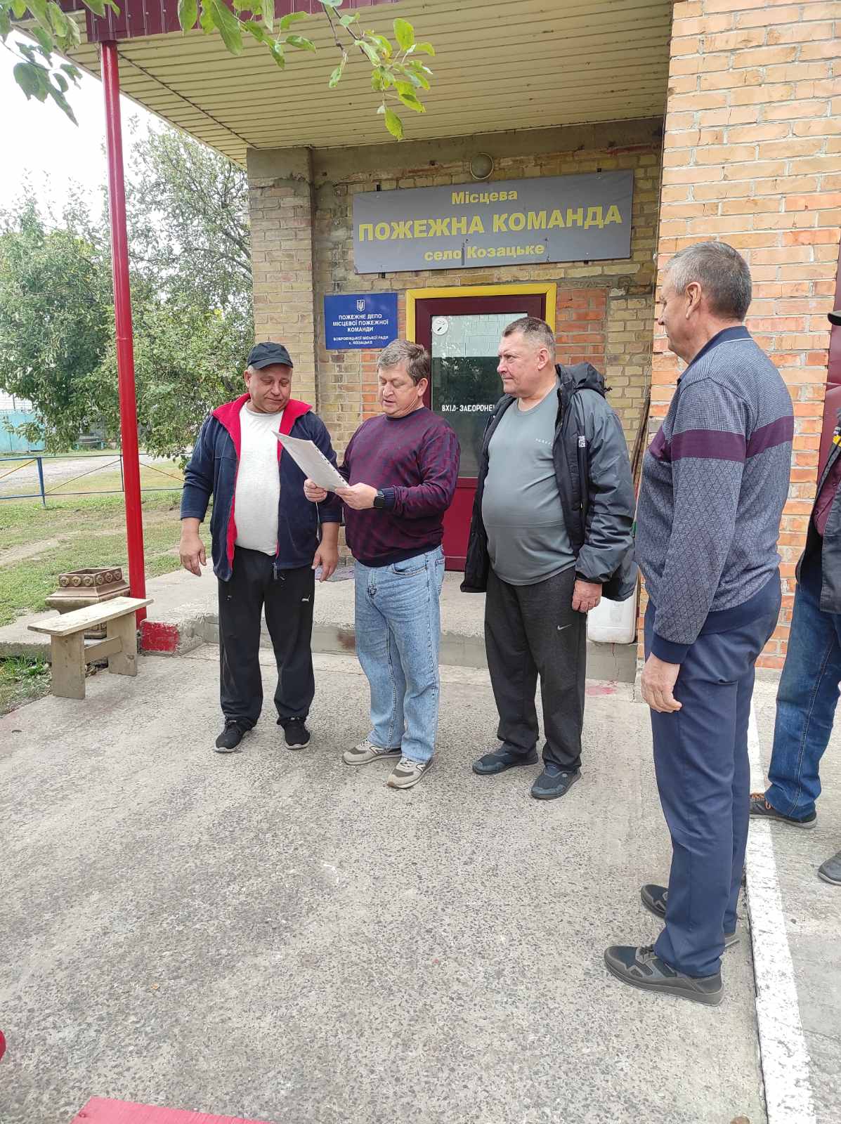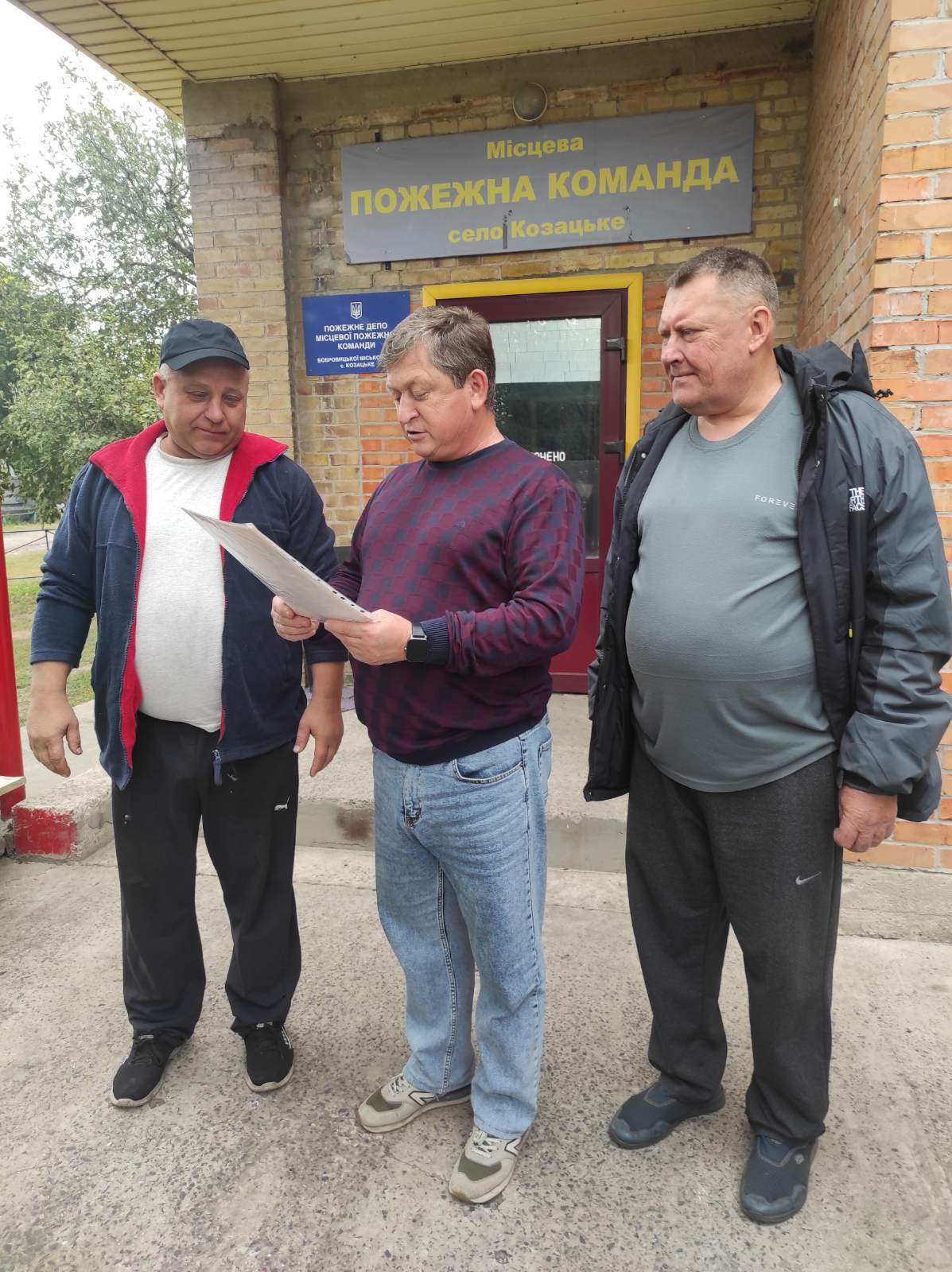 * Працівники Комунального закладу «Місцева пожежна охорона» Бобровицької міської ради, МПК с. Козацьке: пожежник Григорій Бурзак та водій Віталій Задорожний.