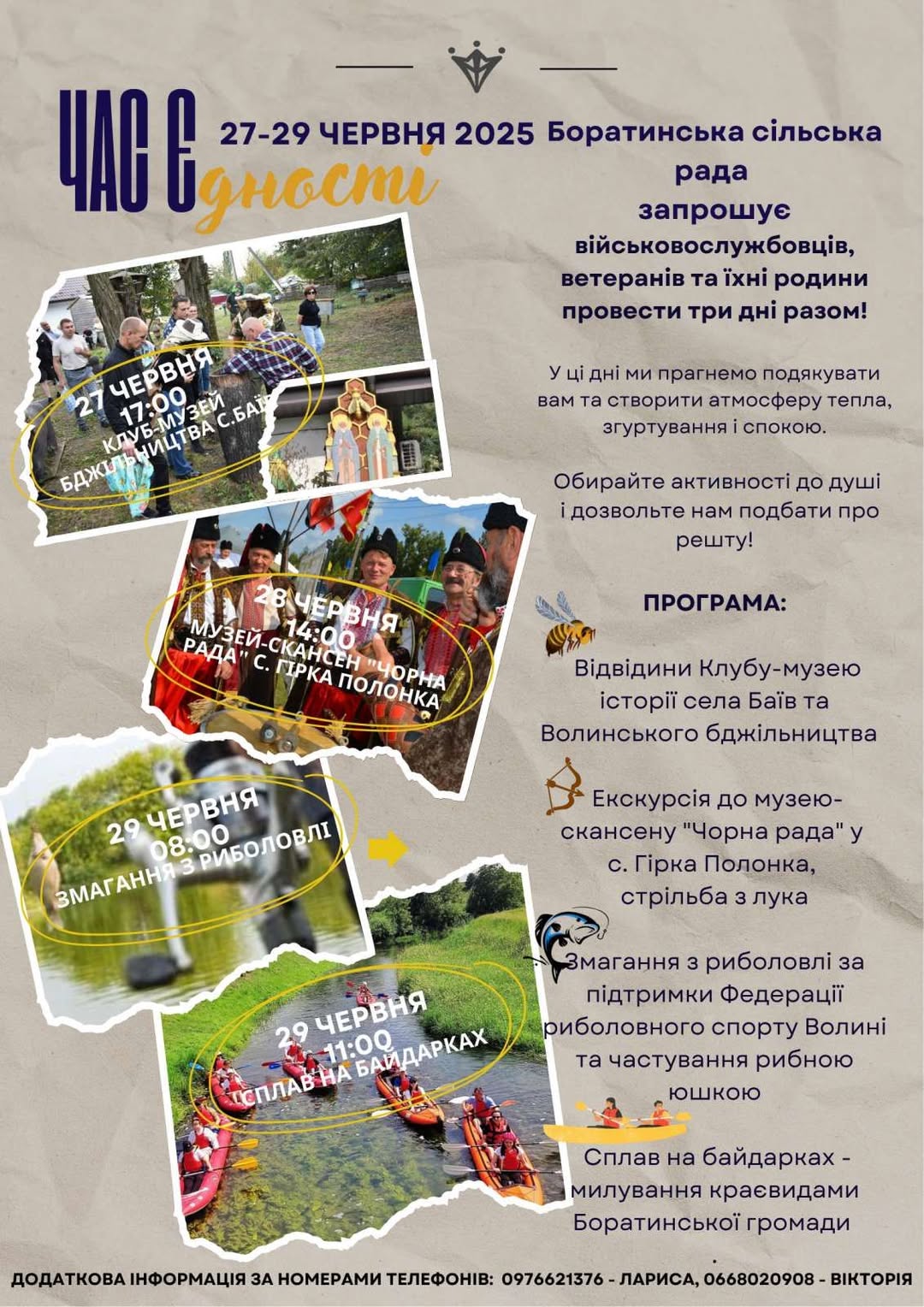 Запрошуємо всіх, чия доля пов’язана з військовою службою, захистом України та підтримкою тих, хто служить чи служив — на перший у Боратинській громаді захід «ЧАС Єднання».