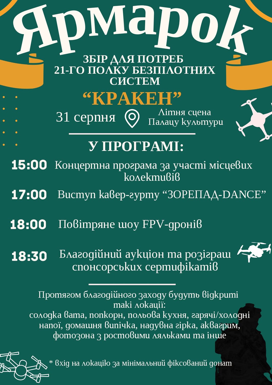 18:00 – Захоплююче повітряне шоу FPV-дронів, що демонструватиме сучасні технології та майстерність пілотів.