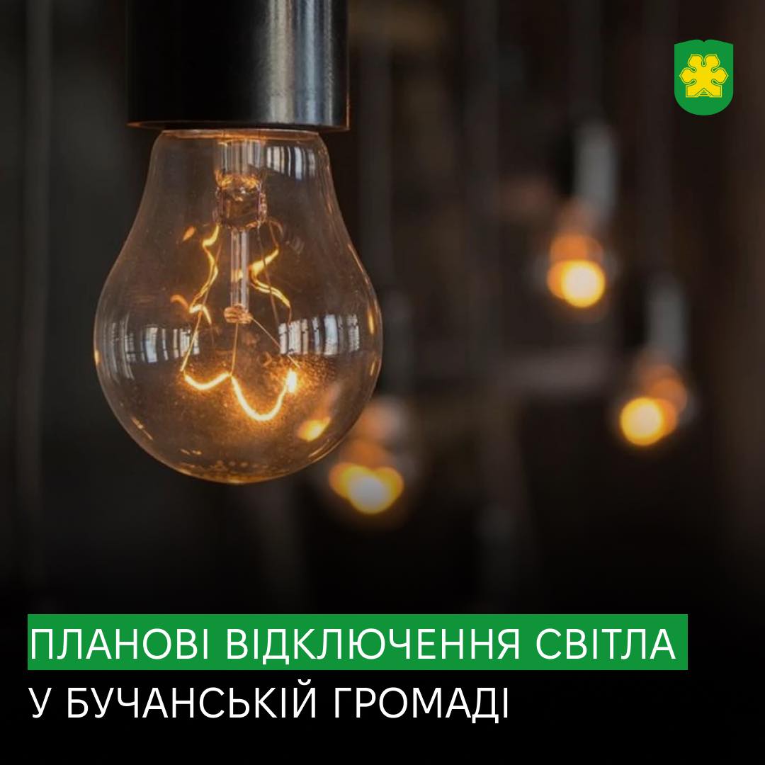⚡У Бучанській громаді відбудуться планові відключення електроенергії.
