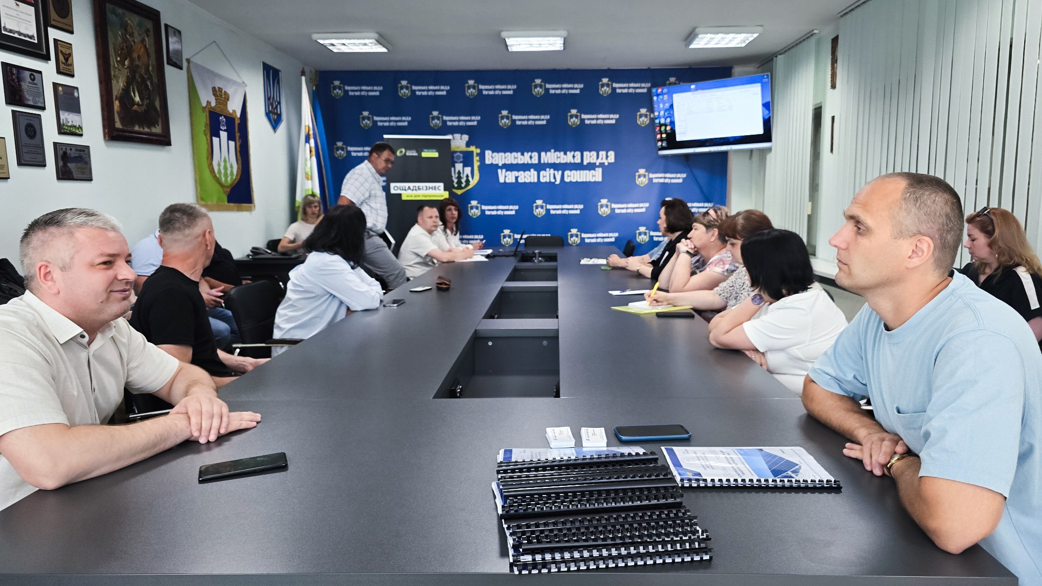 У Вараській громаді відбулася важлива інформаційна зустріч за участю представників АТ “Ощадбанк”, спрямована на підтримку місцевого бізнесу та комунальних підприємств. У заході взяли участь заступник міського голови Дмитро Стецюк, представники Управління економіки та розвитку громади, а також філії Рівненського обласного управління АТ “Ощадбанк”. До обговорення долучилися партнери банку та представники місцевого бізнесу, а також комунальні підприємства Вараської громади.