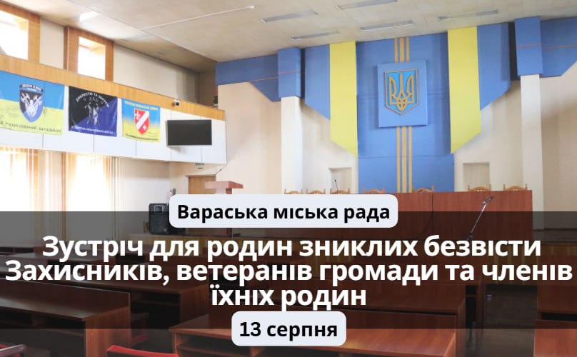 У Вараській міській раді відбудеться зустріч для родин зниклих безвісти Захисників, ветеранів громади та членів їхніх родин.