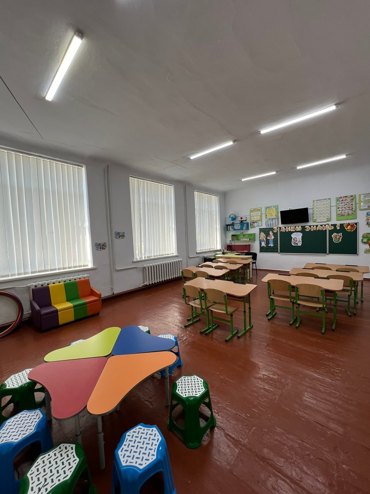 Створено умови для майбутніх першокласників, класи оформлені у теплих кольорах, забезпечено необхідними меблями, парти та стільці відповідають віку дітей, передбачені навчальні куточки, забезпечено матеріально-технічним обладнанням, зокрема технічними засобами навчання.