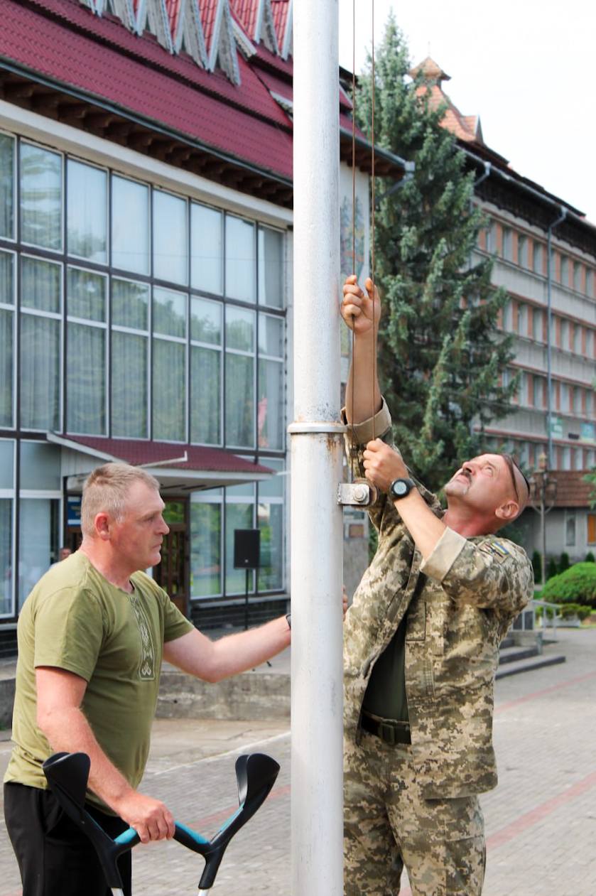 🇺🇦 Право підняти Державний Прапор України було надано героям-захисникам — солдату розвідвзводу 79 калуського батальйону 102 бригади ТРО Ярославу Вигодованку та солдату 4-ї танкової механізованої бригади Віктору Кренціву. Під звуки Гімну та піднятого Прапора в серцях кожного з нас лунала гордість і вдячність.