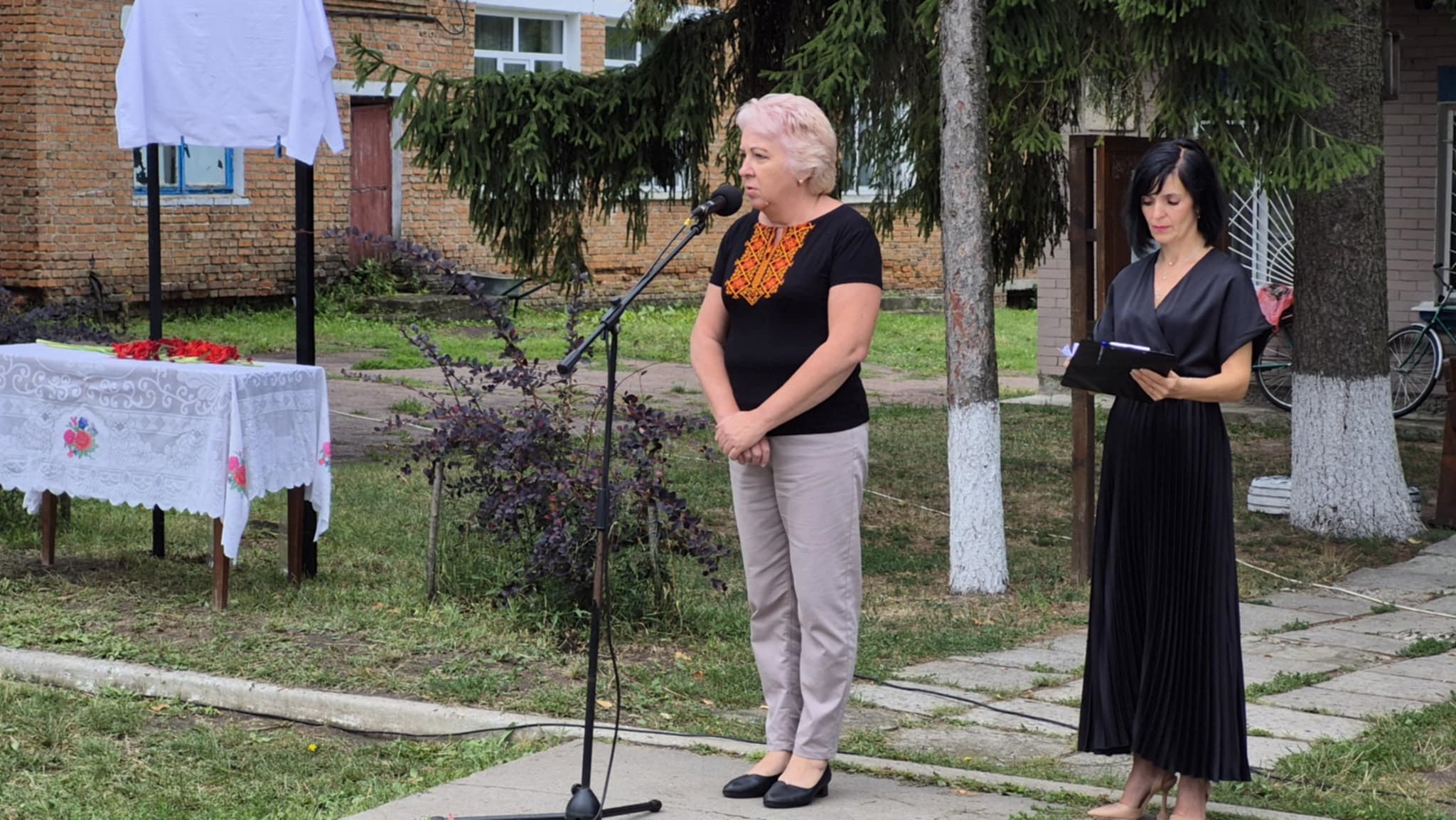 Меморіальну дошку встановили у центрі села, щоб кожен, хто проходитиме повз, міг згадати подвиг свого земляка. Траурний мітинг розпочали Державним Гімном.