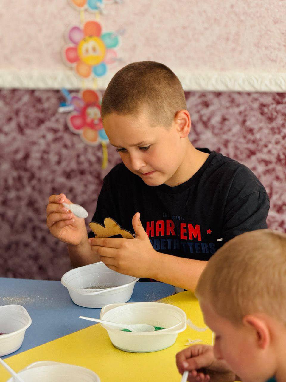 Найбільш очікуваною та захопливою частиною зустрічі стало креативне творче завдання 🎨 — створення унікальних магнітів із блискіток. Діти із захопленням експериментували, вигадуючи власні дизайни 🖌️ та поєднуючи різноманітні 🌈 кольори. Цей етап не лише стимулював їхню уяву 🌟 та творчий потенціал, але й приніс щиру радість від спільної діяльності та результату. Кожен учасник міг забрати з собою власноруч виготовлений магнітик як пам’ятку 🎁 про цей чудовий день, наповнений дружбою та творчістю.