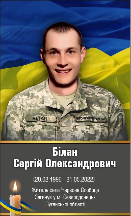 Сергія Олександровича Білана (20.02.1996 – 21.05.2022),
