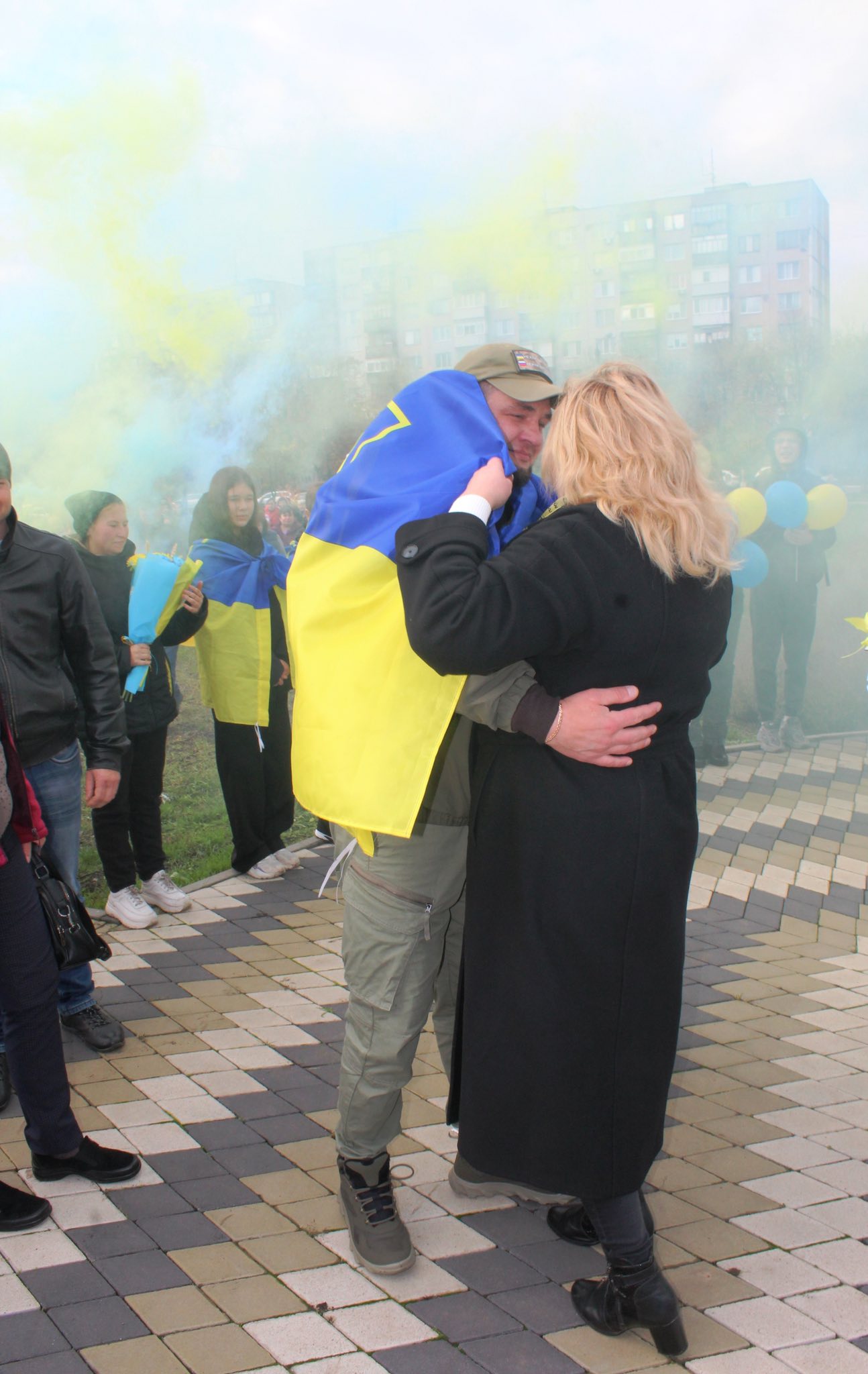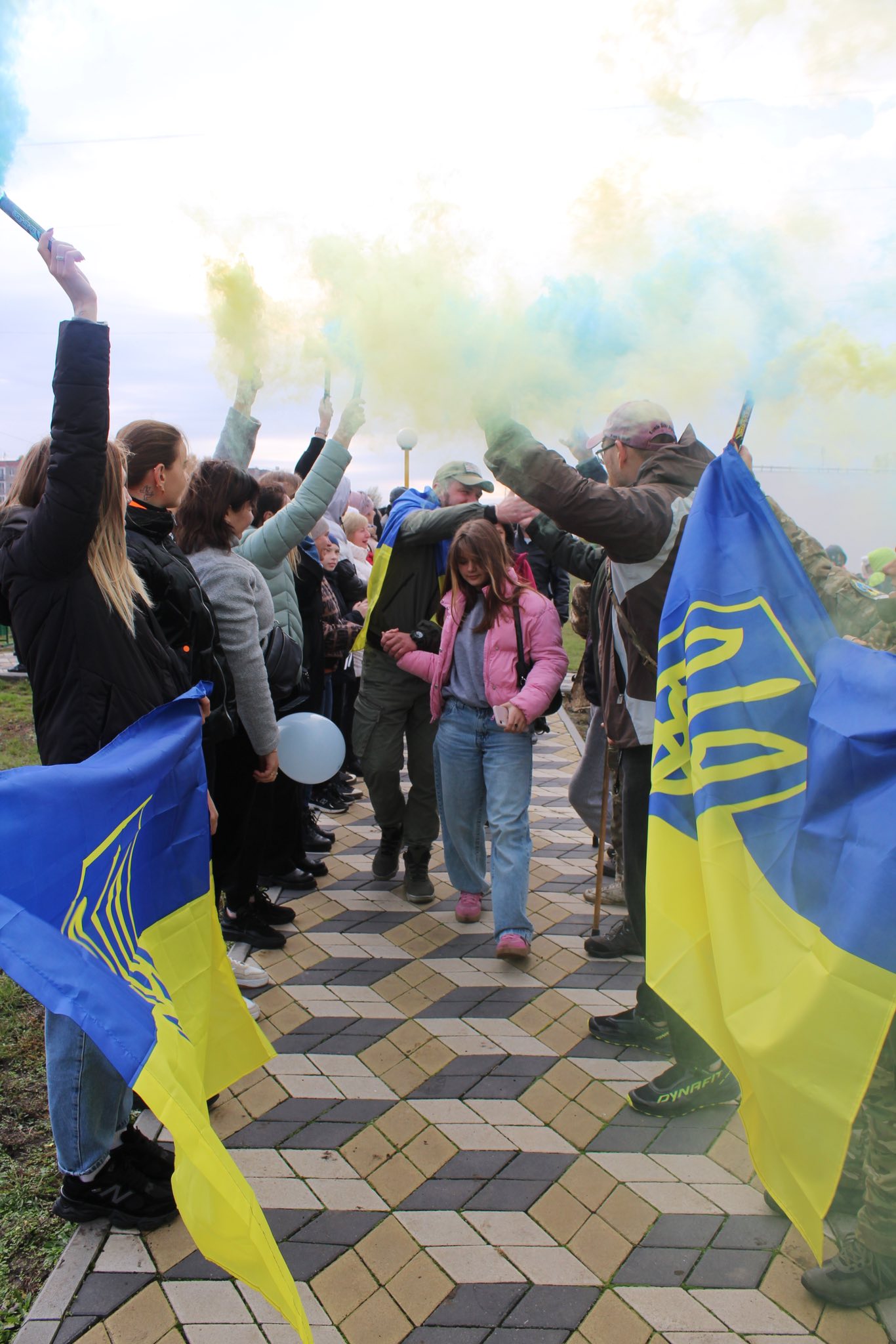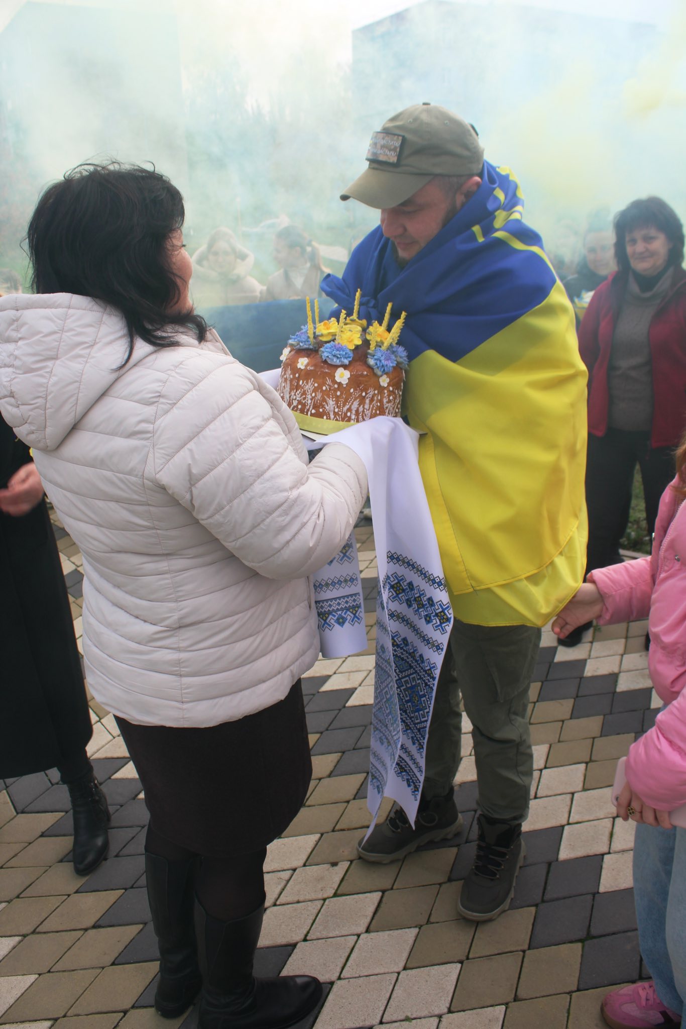 З розпростертими обіймами, українським короваєм та щирими емоціями зустрічали Олега представники місцевої влади, ветерани війни, учнівська молодь та небайдужі жителі громади. Державні прапори, квіти та кульки символізували глибоку вдячність і повагу до Захисника за його незламну мужність і стійкість. Присутні не могли стримати сліз радості, висловлюючи слова подяки та захоплення, міцно обіймаючи свого земляка та даруючи йому квіти.
