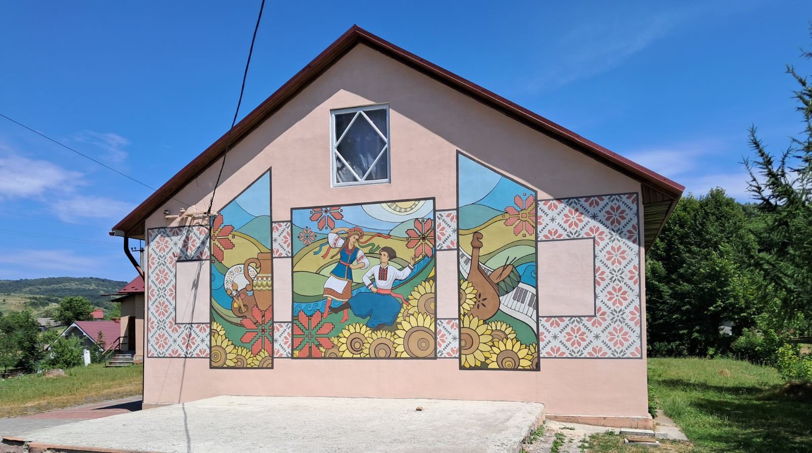 Не менш важливі роботи було виконано і в Народному домі села Опака. Тут зосередились на оновленні фасаду та внутрішніх приміщень. Проведено ґрунтовні штукатурні роботи, що підготували поверхні для подальшого фарбування та художнього оформлення. Завдяки ретельній реконструкції та фарбуванню будівля набула свіжого та привабливого вигляду. Проте справжньою родзинкою, яка викликає захоплення як у місцевих жителів, так і у численних гостей, стало нове оформлення фасаду. Його прикрасили майстерно виконані народні малюнки, що не лише естетично збагачують будівлю, а й символізують глибоке коріння та багату культурну спадщину цього краю. Такі народні мотиви на фасаді Народного дому в Опаці свідчать про повагу до традицій та прагнення зберегти унікальну ідентичність громади, підкреслюючи важливість розвитку культури.