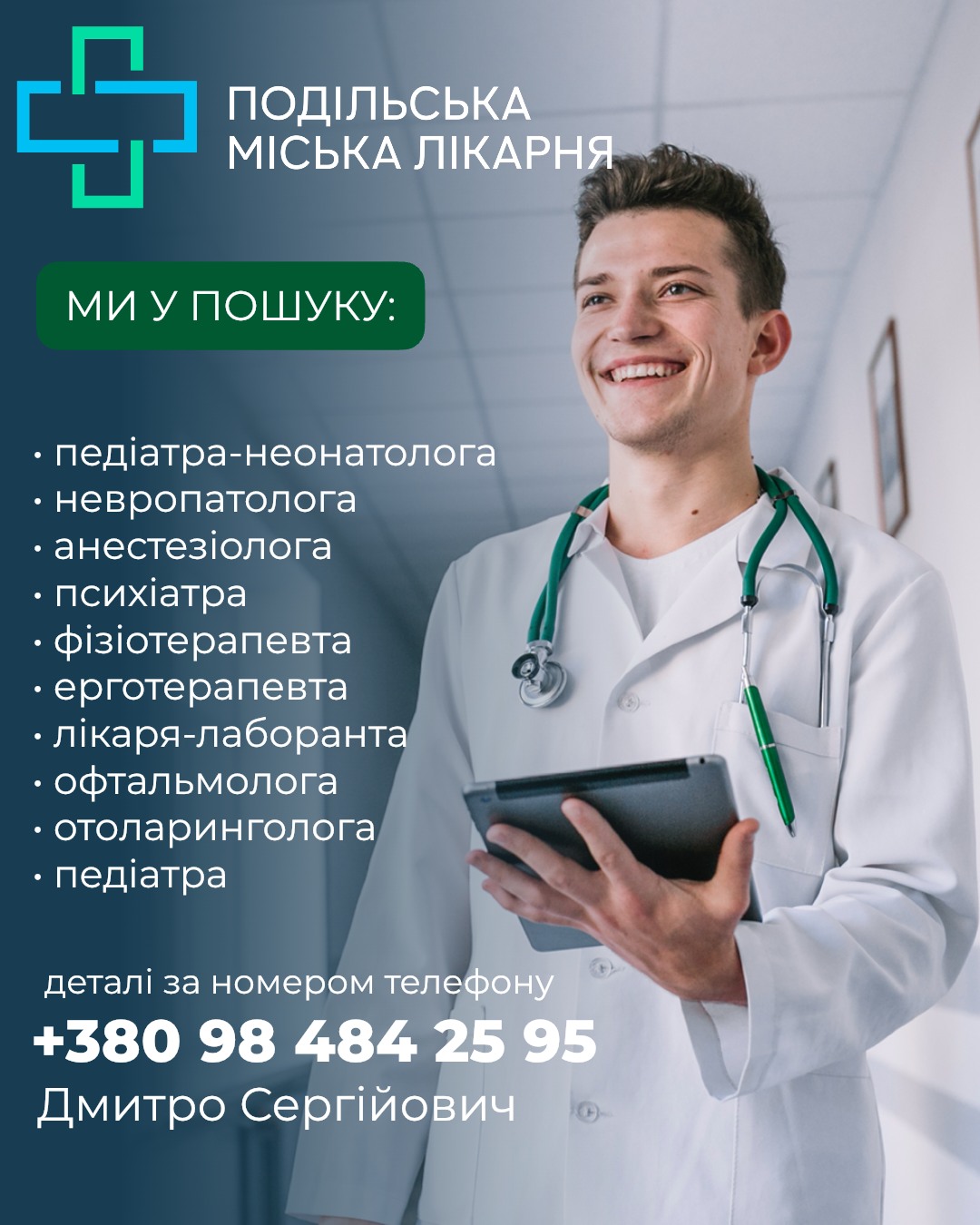 📣 У зв’язку з розширенням Подільська міська лікарня запрошує на роботу: