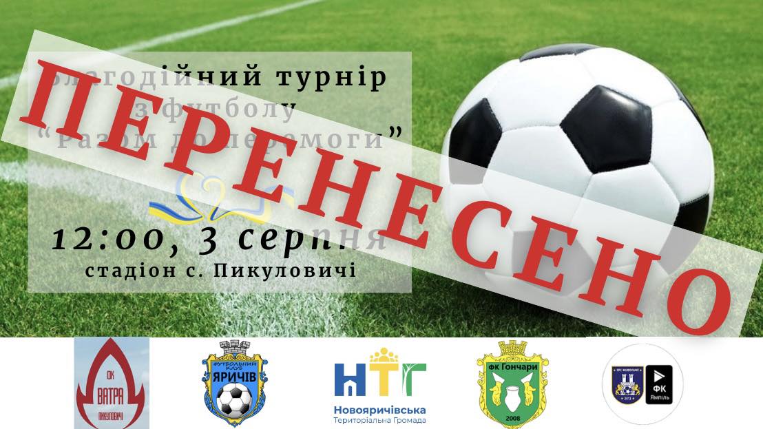 У зв’язку з глибоко шанованою подією – похороном полеглого Героя Василя Букового, який відбудеться у сусідньому селі Ямпіль, було прийнято рішення про перенесення Благодійного турніру з футболу «Разом до перемоги». Ця жалобна подія, що торкається кожного з нас, вимагає особливої поваги та солідарності. Ми віддаємо шану пам’яті нашого Героя, чия самовідданість та жертовність надихають нас і надалі боротися за перемогу.