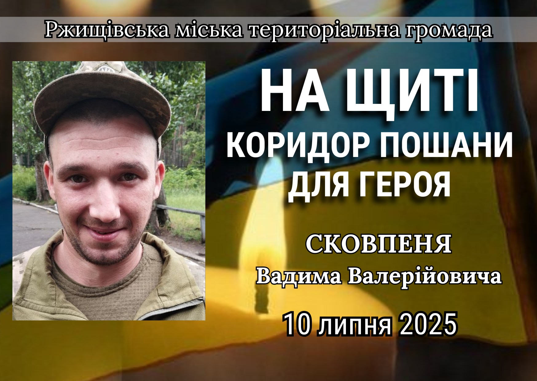 У ЗНАК ПОШАНИ ОРГАНІЗУЙМО ЖИВИЙ КОРИДОР СЛАВИ ДЛЯ НАШОГО ЗЕМЛЯКА ТА ЗАХИСНИКА УКРАЇНИ ВАДИМА СКОВПЕНЯ
