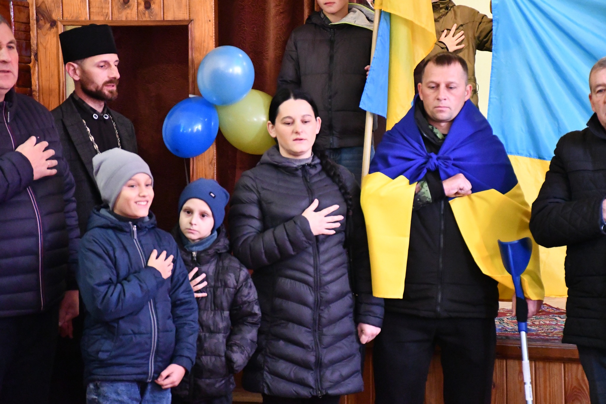 «Слава Україні! Дуже дякую, що ви мене так зустріли. Найперше – дякую Богу, що я живий. Дякую своїй дружині Христині, синочкам Олежику й Денису – ви дали мені силу триматися. Дякую всім вам – за молитви, підтримку, за цю зустріч. Ми вистоїмо, ми сильні, ми незламні!»